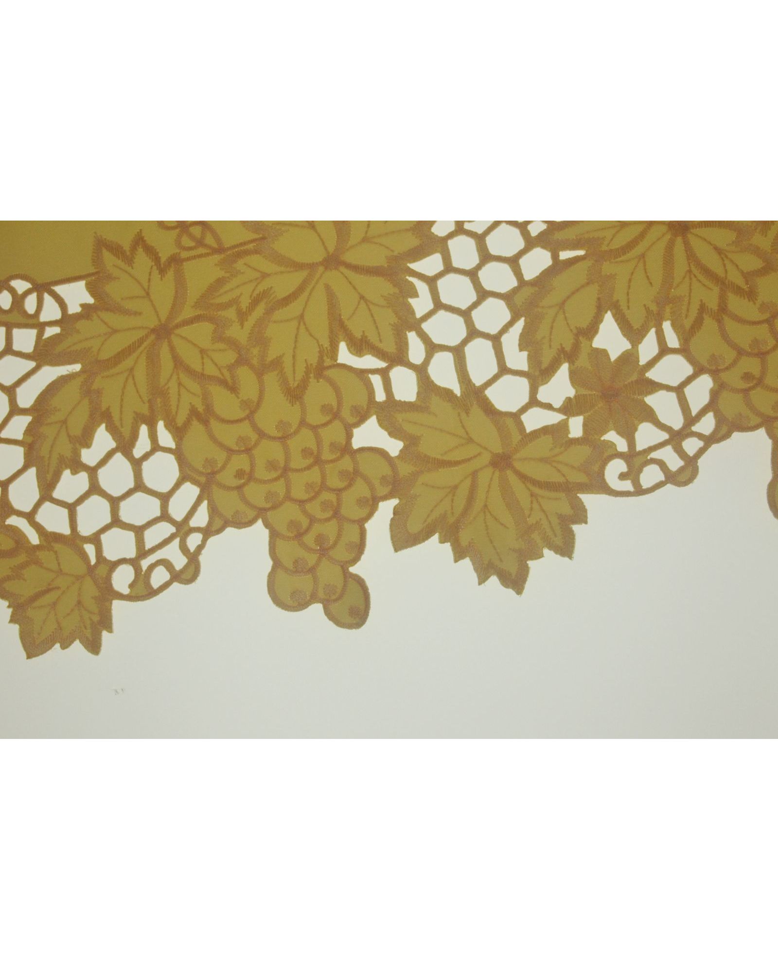 Эта салфетка сочетает в себе спокойный бежевый цвет и изящную ажурную вышивку винограда, создавая атмосферу уюта и утончённости. Она гармонично впишется в классическую или современную обстановку и будет радовать вас довго благодаря зносостойкому полиэстеру.