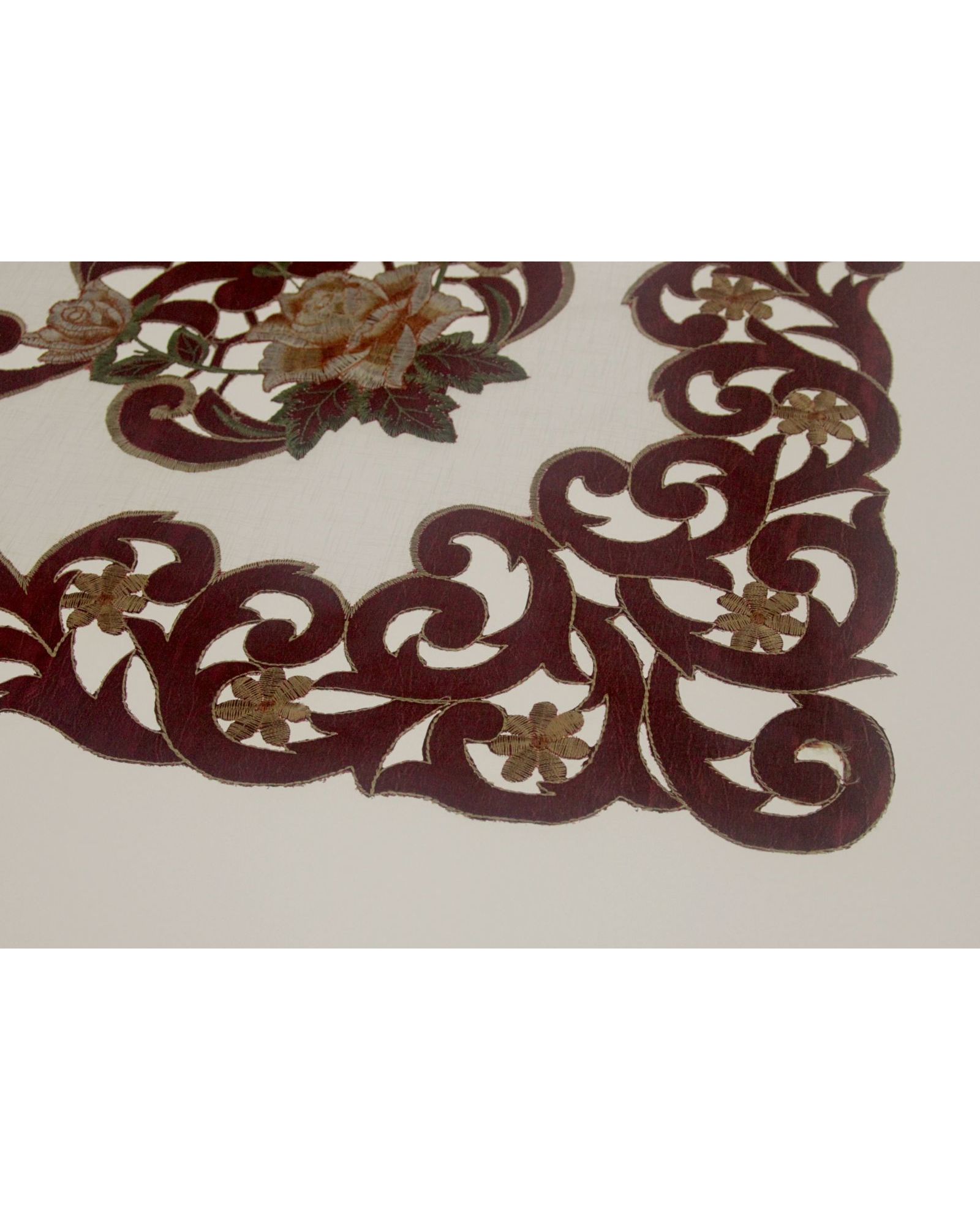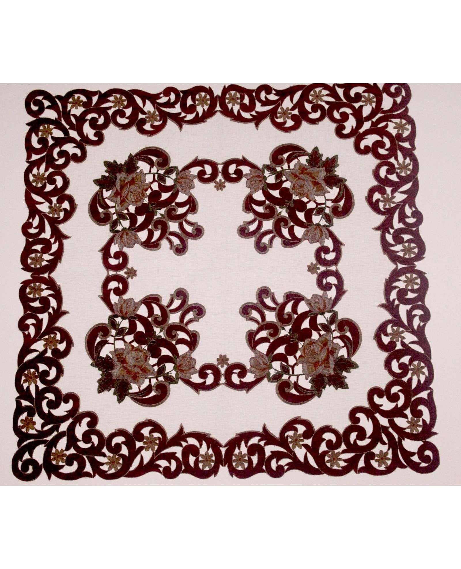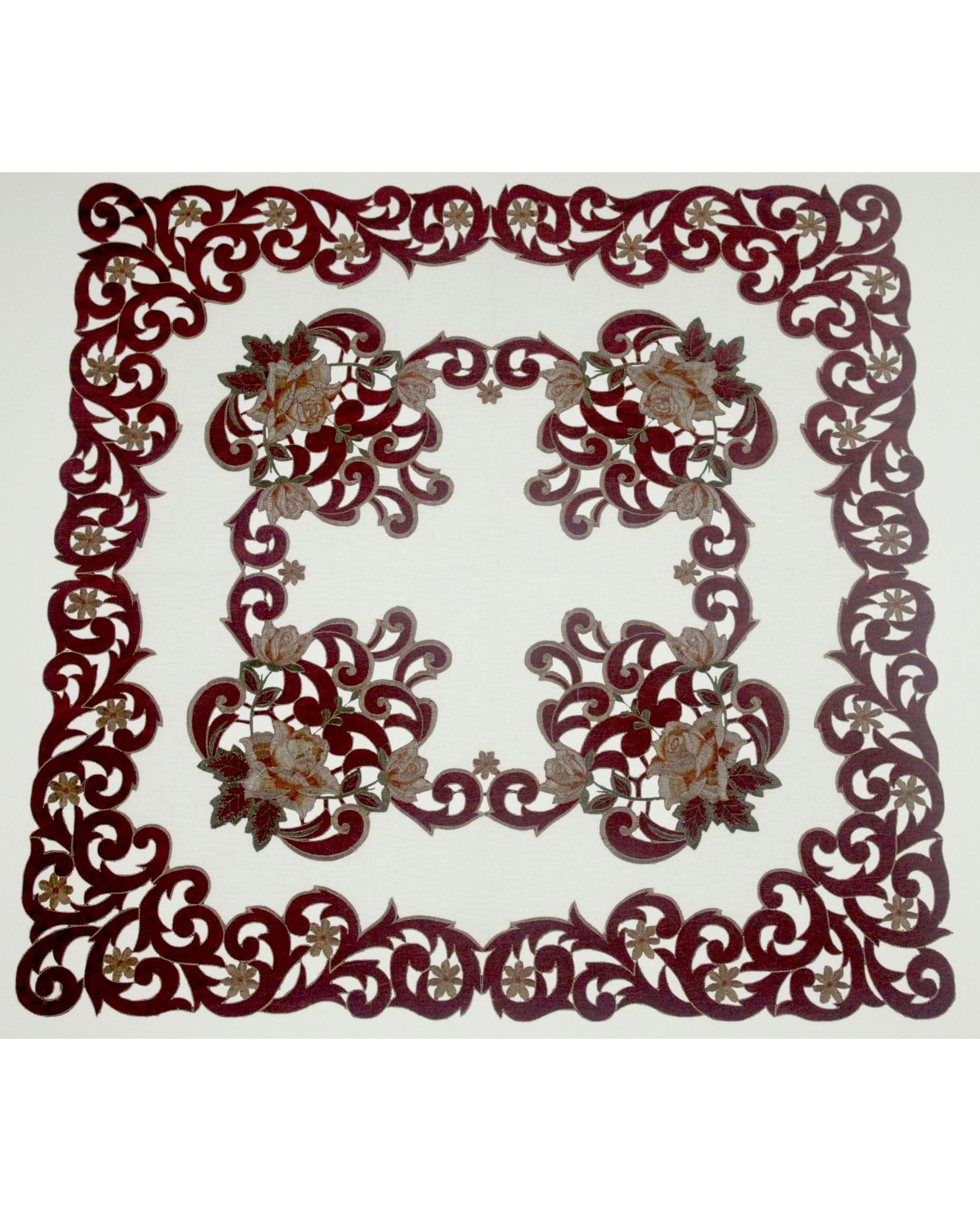 Салфетка бордовая с вышивкой и ажуром 85х85 см – стильное украшение любого застолья