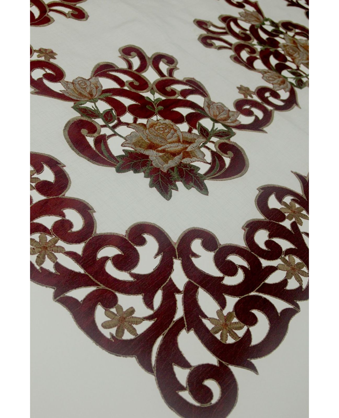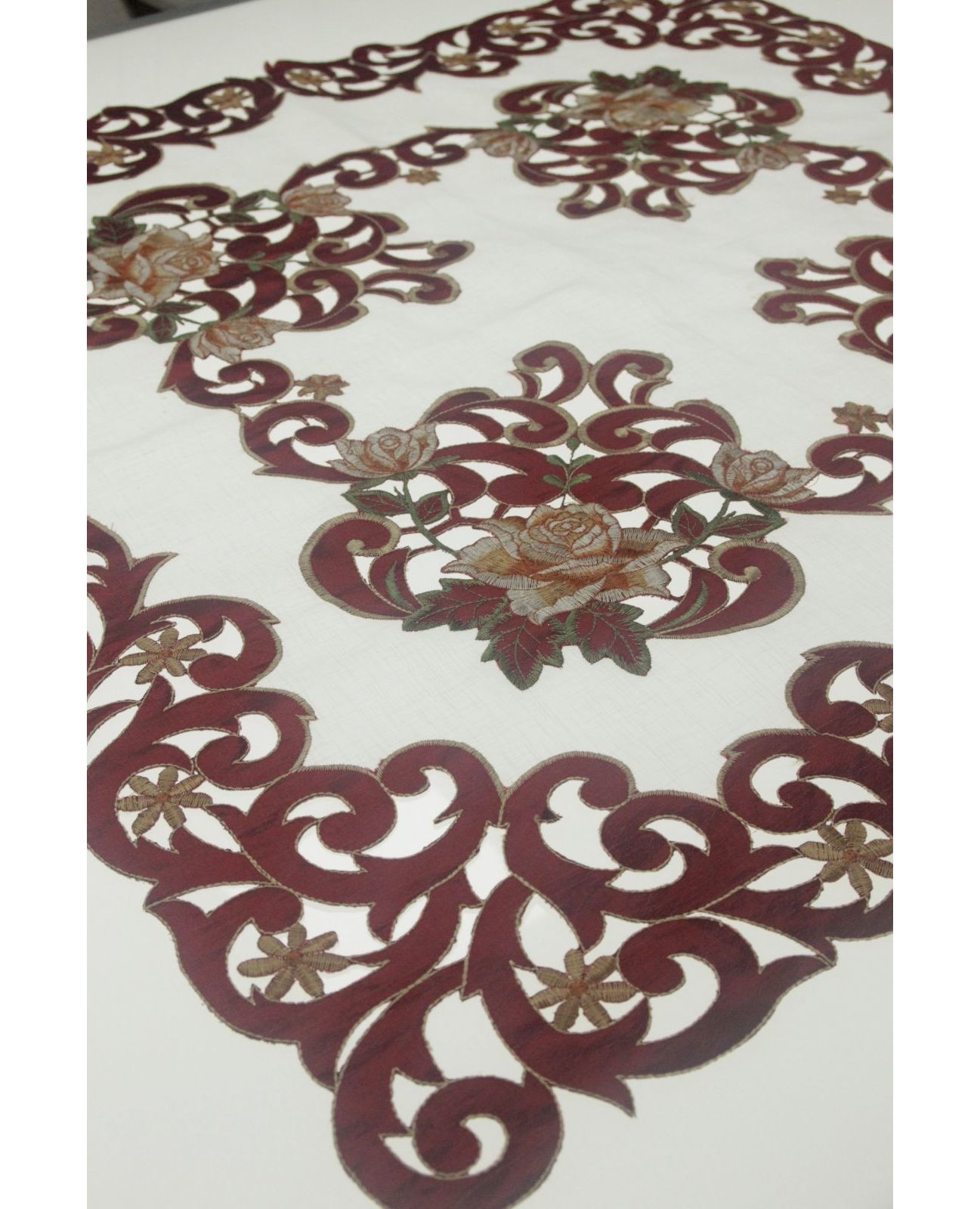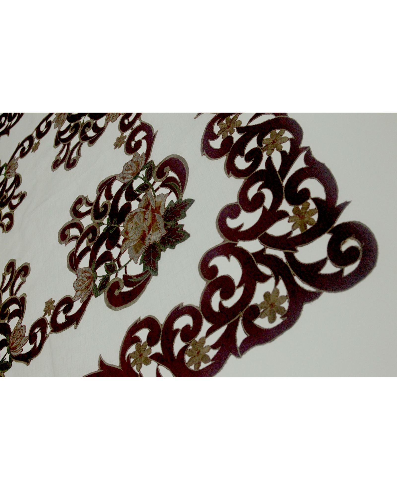 Салфетка бордовая с вышивкой и ажуром 85х85 см – стильное украшение любого застолья