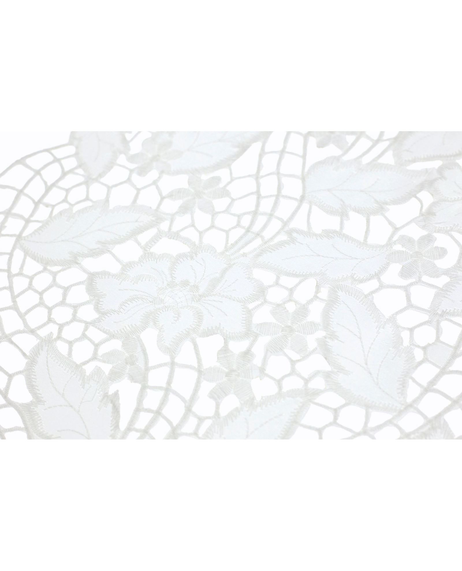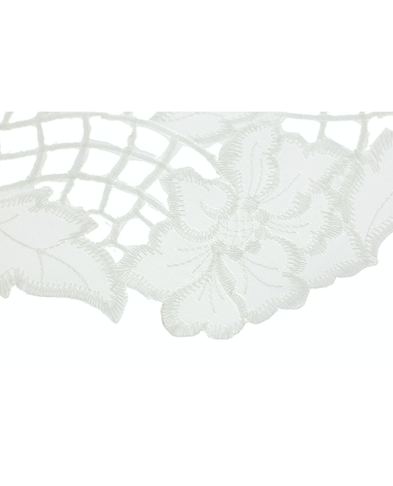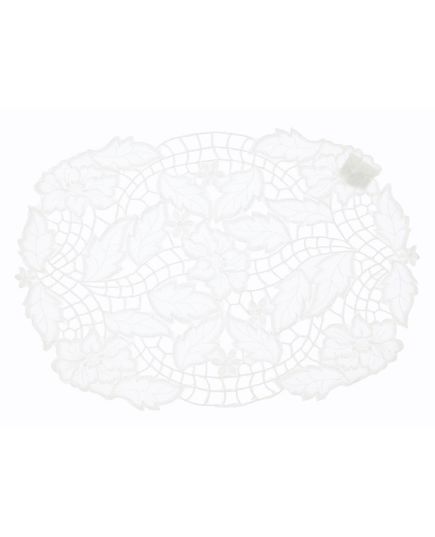 Изящная овальная салфетка в белом цвете придаёт изысканности любой сервировке. Ажурная вышивка делает изделие декоративным и нарядным. Подходит для повседневного использования и торжественных случаев.