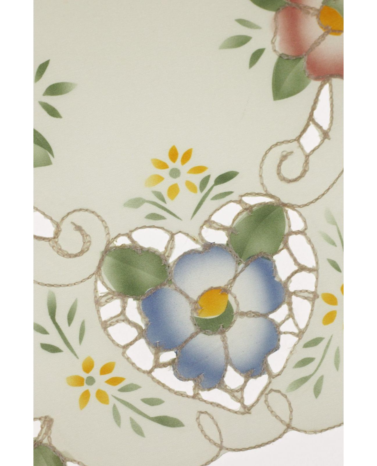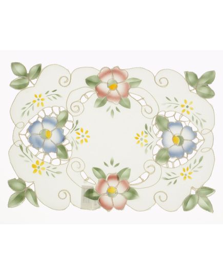 Изысканная салфетка прямоугольной формы в мягком молочном оттенке украшена аккуратной вышивкой. Волнистые края придают изделию изящности и декоративности. Идеальный выбор для повседневной и праздничной сервировки стола.