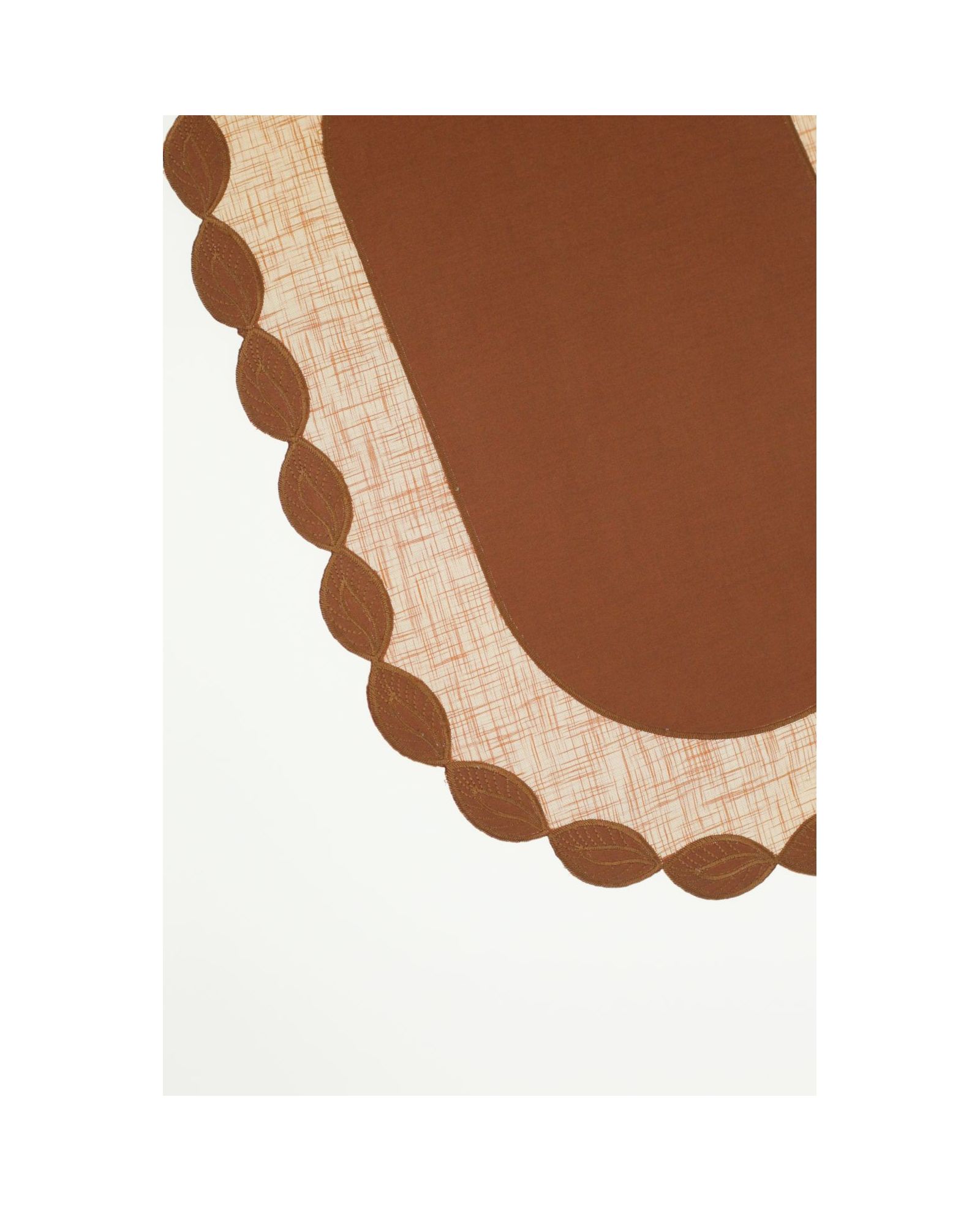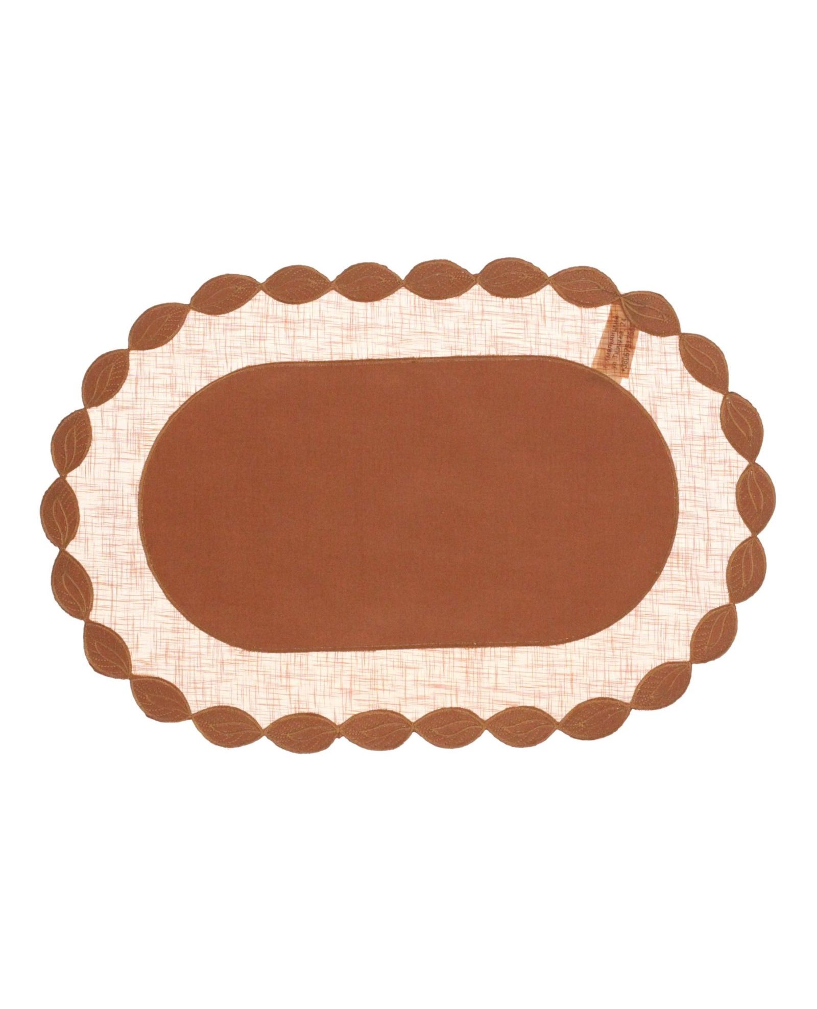 Элегантная овальная салфетка глубокого терракотового оттенка станет стильным украшением сервировки. Вышивка придаёт текстилю декоративный акцент и уютную атмосферу — как в будни, так и на праздник.