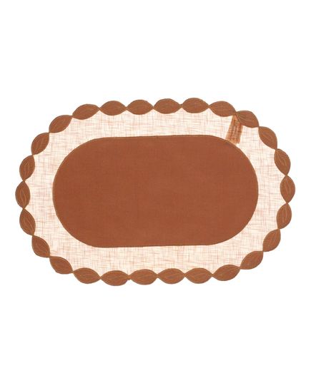 Салфетка терракотового цвета с вышивкой 30х45 см, овальная