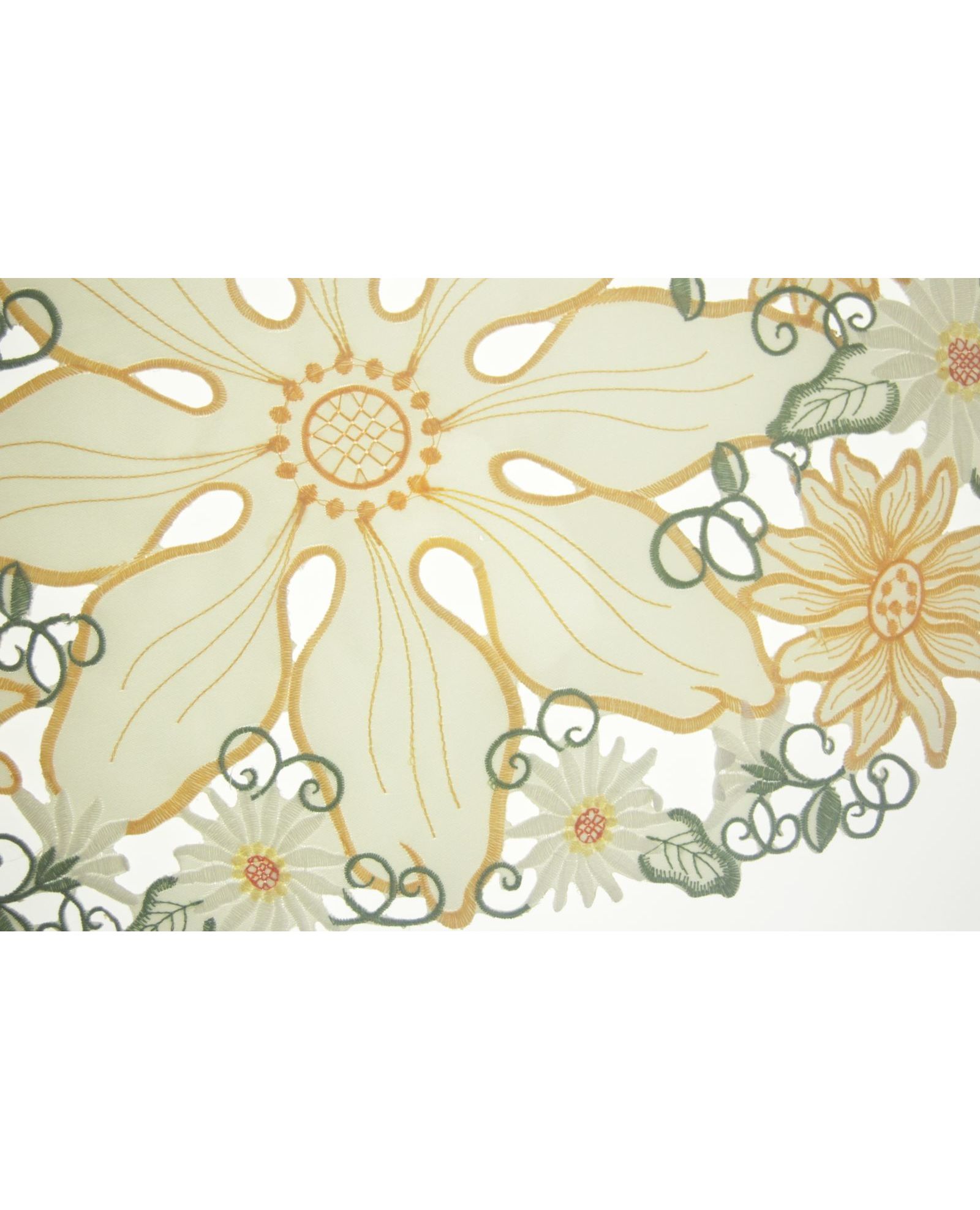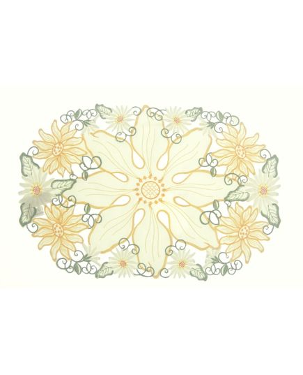 Овальная салфетка в спокойном бежевом цвете идеально дополнит сервировку стола как на каждый день, так и для торжественных случаев. Ажурная вышивка придаёт изделию изысканность и уют.