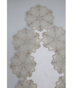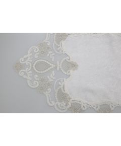 Салфетка бежевого цвета с ажурной вышивкой 40х120 см Элегантная салфетка размером 40х120 см в бежевом цвете, украшенная изысканной ажурной вышивкой, придаст вашему столу утонченность. Благодаря составу из 100% полиэстера она прочная, проста в уходе и сохраняет свой внешний вид после...