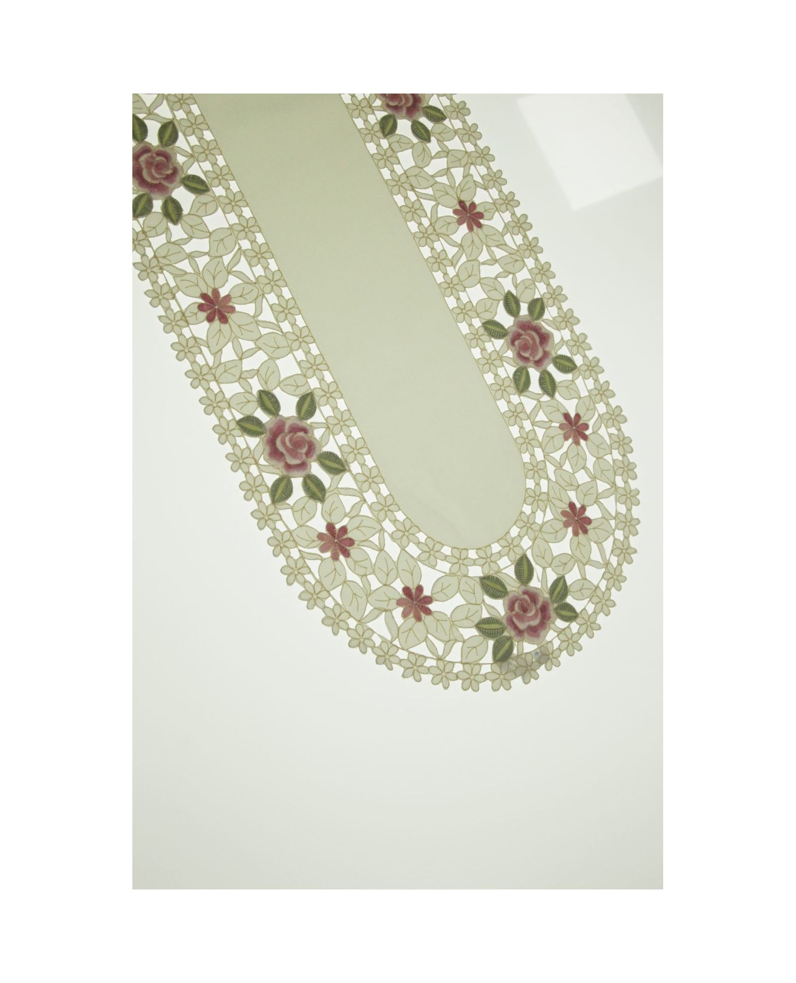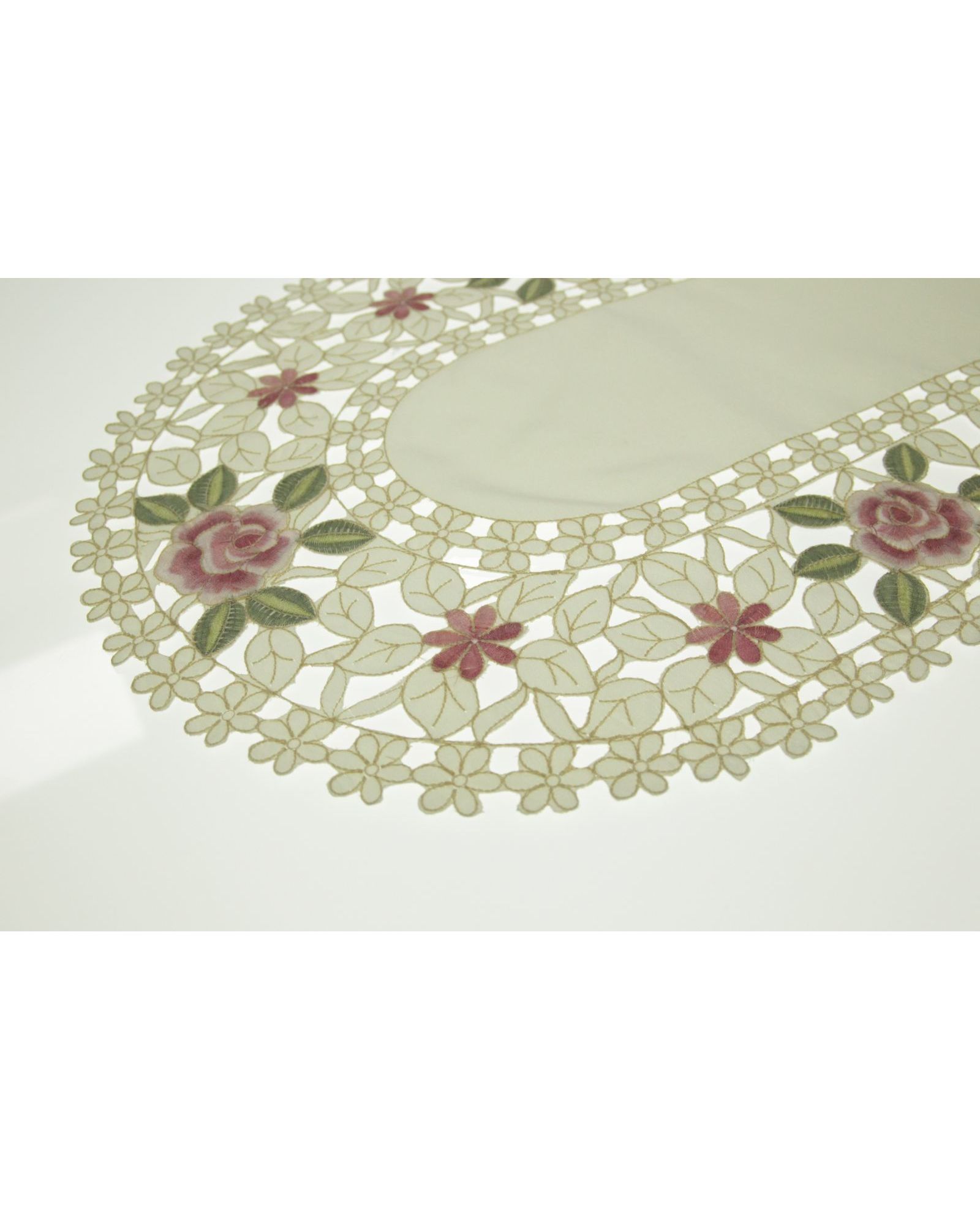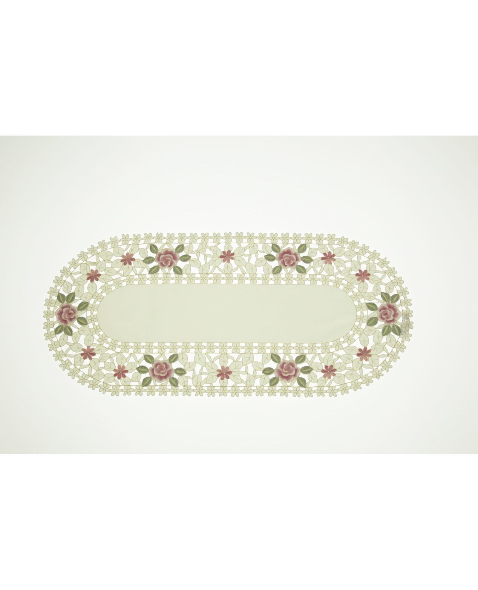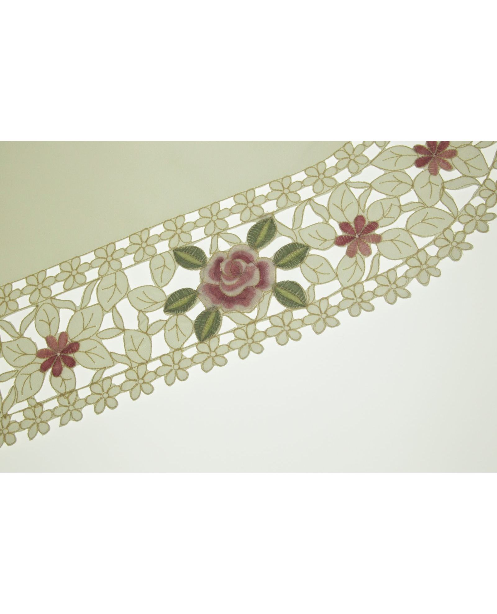 Салфетка молочного цвета с ажурной вышивкой 40х110 см