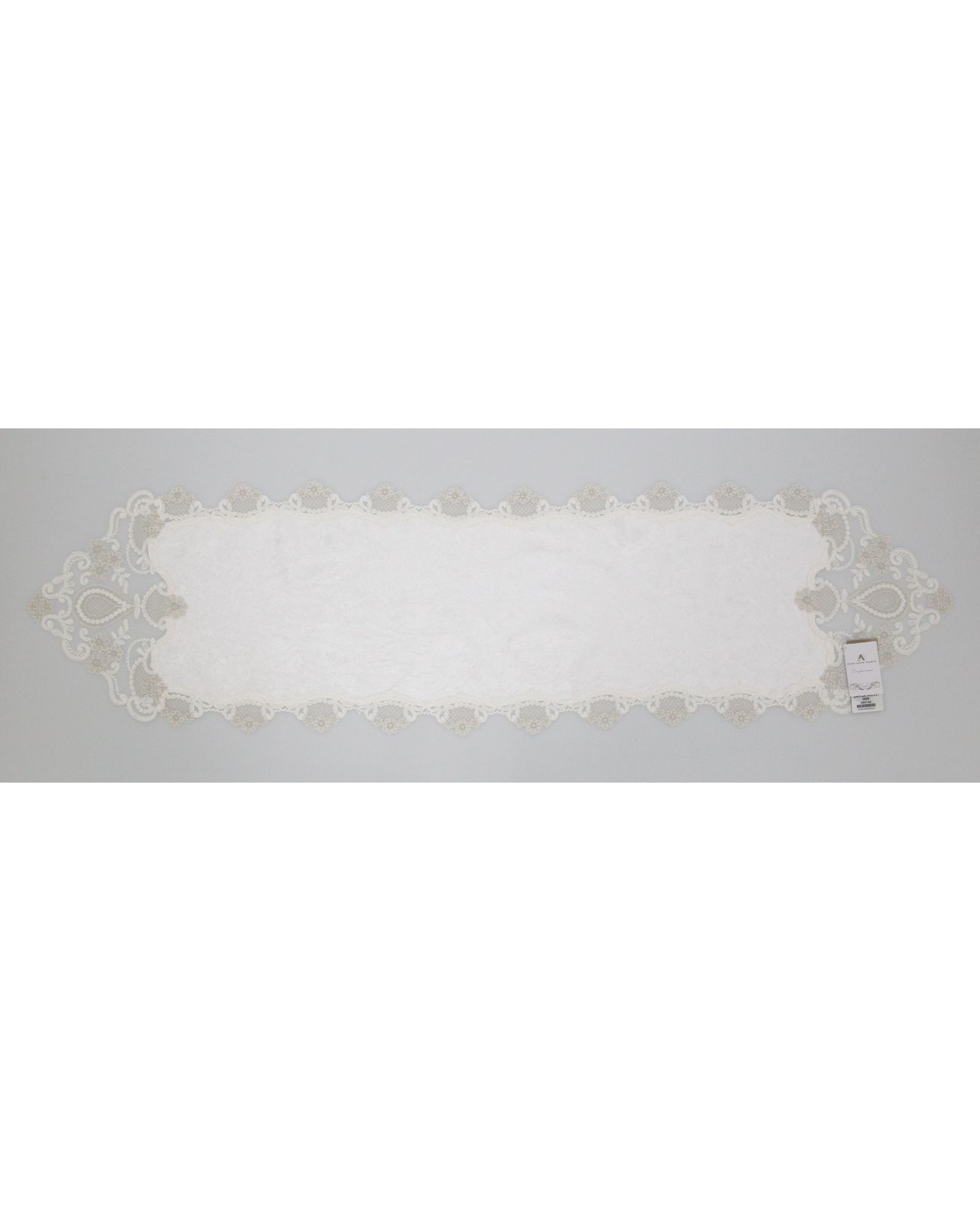 Салфетка молочного цвета с кружевом 35х140 см