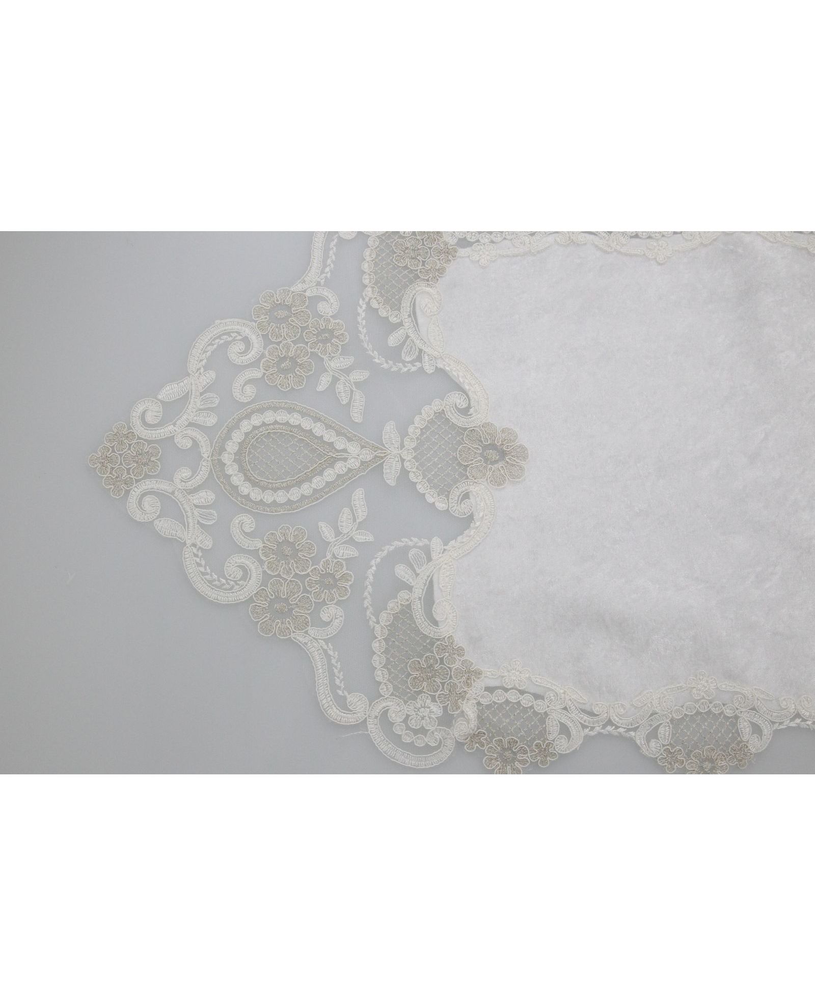 Элегантная салфетка размером 35х140 см в молочном цвете станет изысканным акцентом в оформлении интерьера. Украшенная нежным кружевом, она выглядит роскошно и стильно. Мягкий бархат (100% полиэстер) делает изделие особенно приятным на ощупь. Производство — Турция, что подтверждает высокое качество материала и пошива.