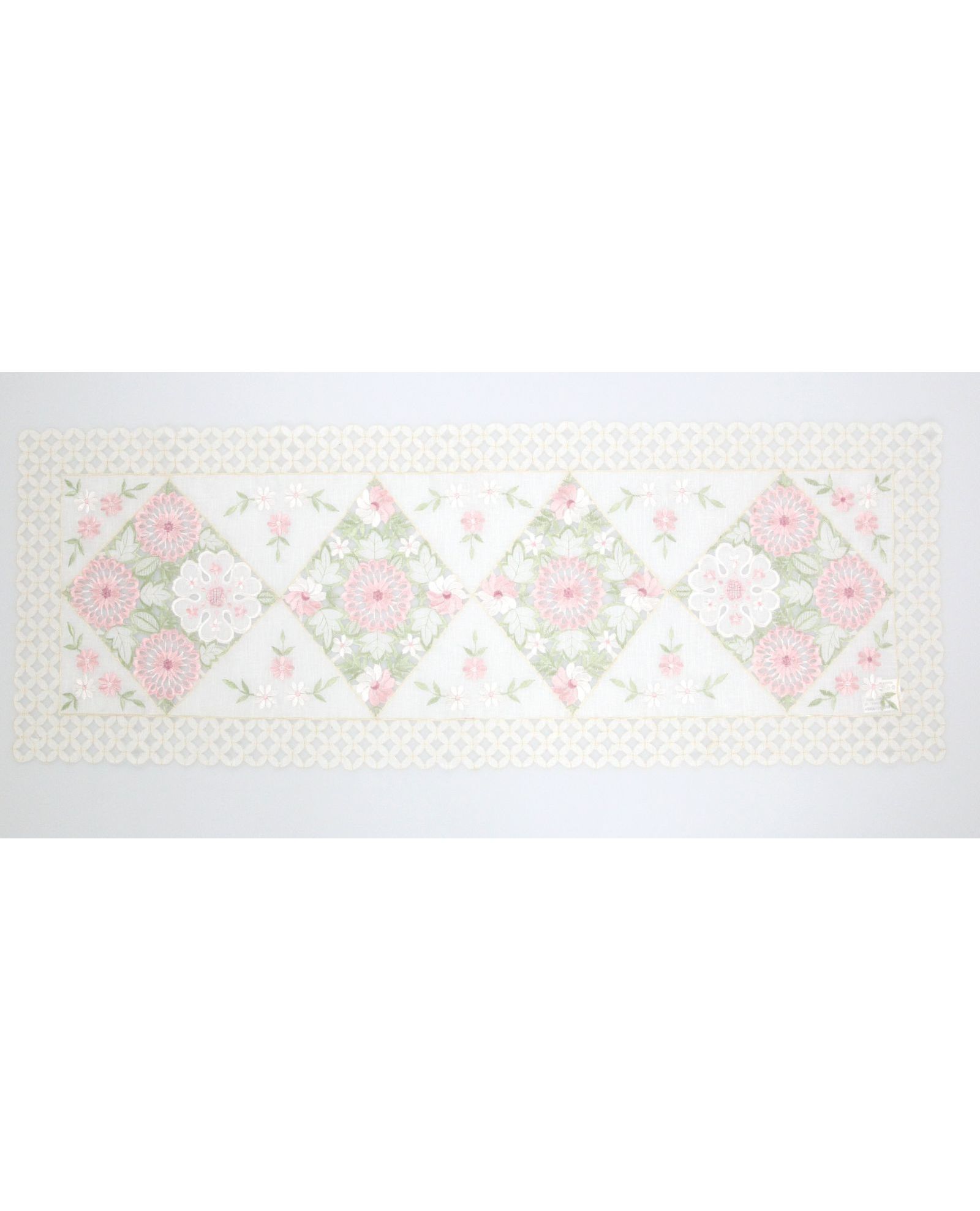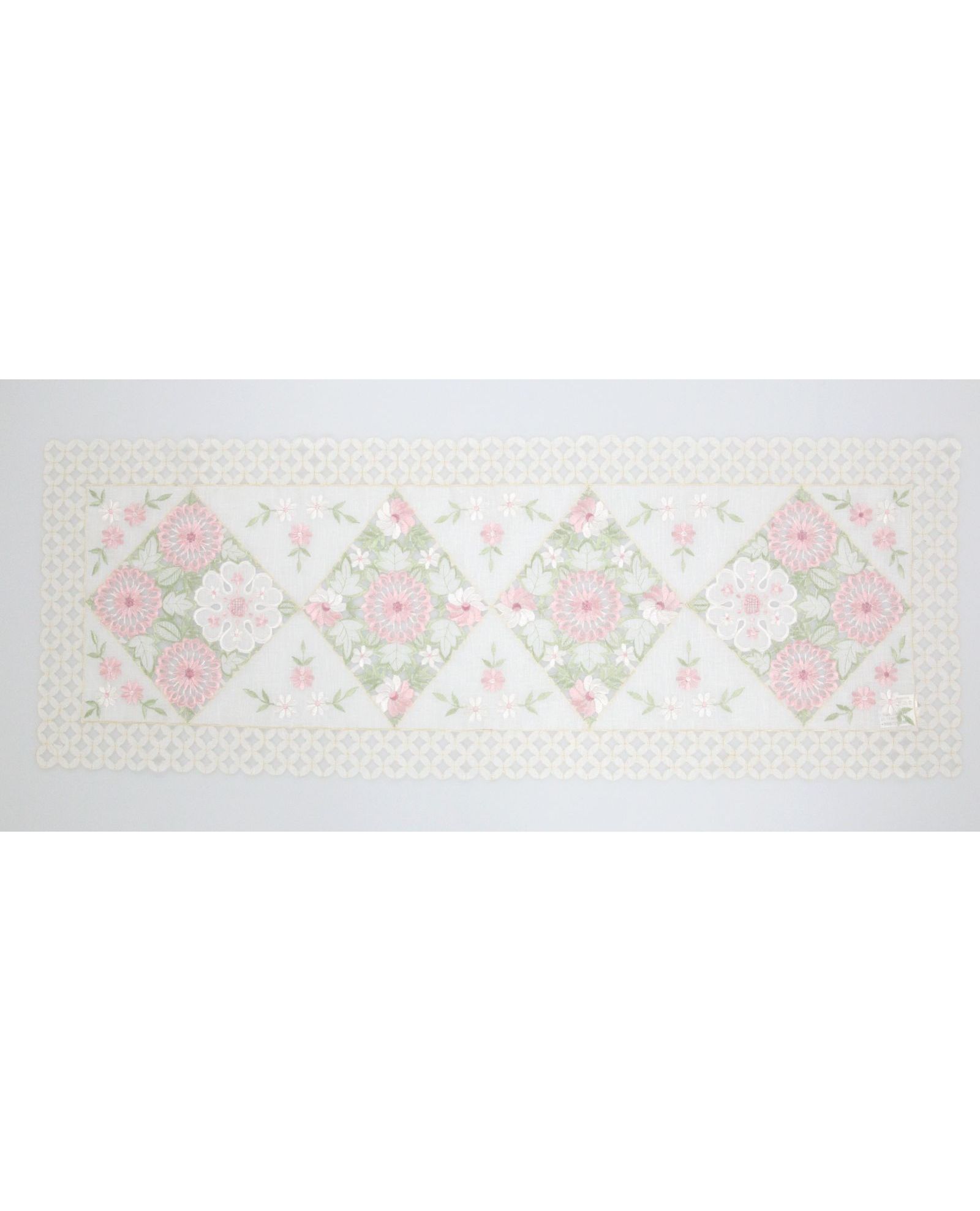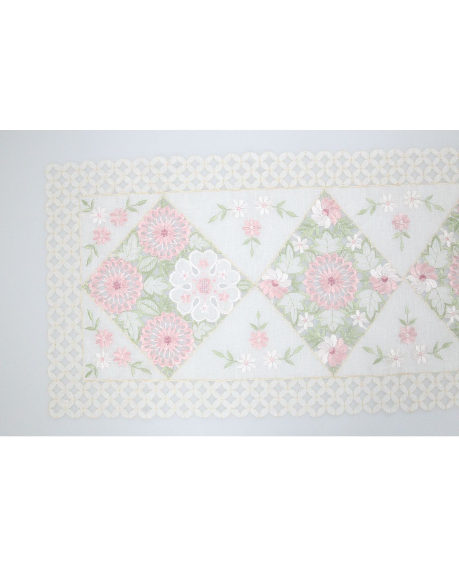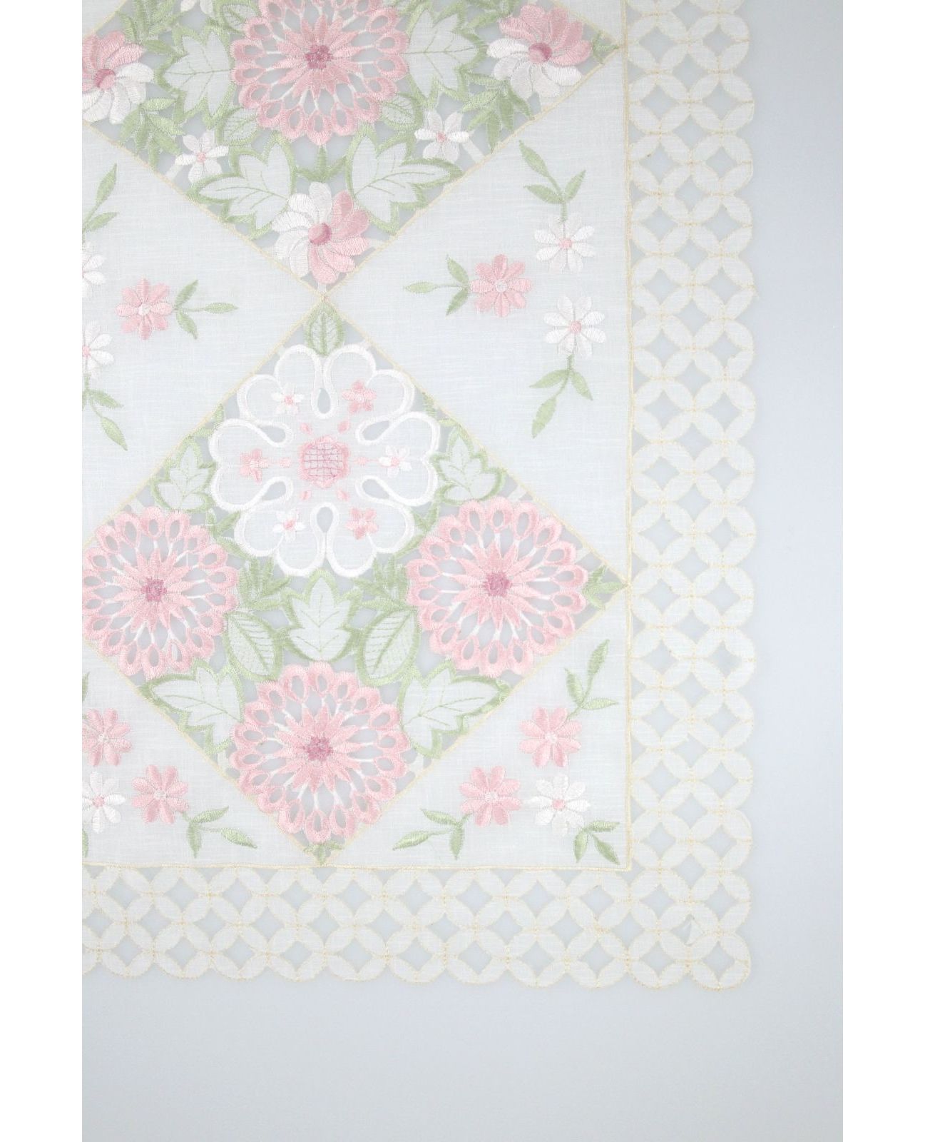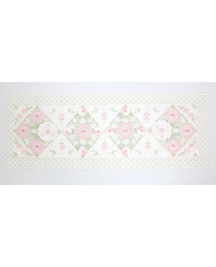 Салфетка розового цвета с ажурной вышивкой цветов 40х110 см