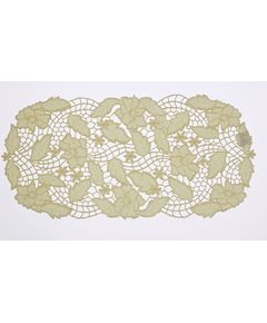 Салфетка зеленого цвета с ажурной вышивкой цветов с золотистой нитью 40х85 см Эта элегантная салфетка зеленого цвета с ажурной вышивкой цветов, украшенная золотистой нитью, станет отличным дополнением к вашему праздничному или повседневному столу. Ее утонченный дизайн придает стилю и...