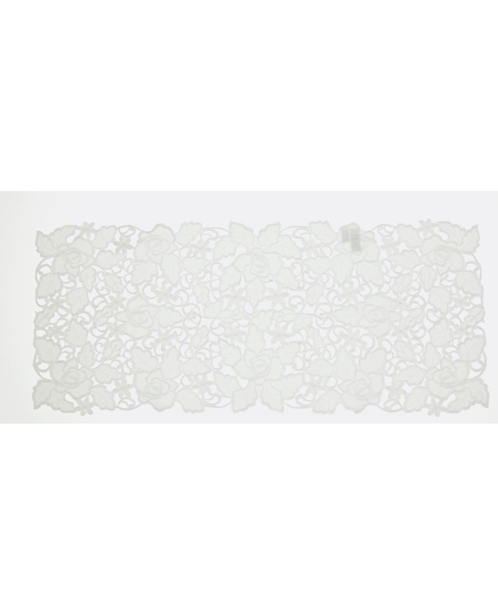 Салфетка белого цвета с ажурной вышивкой цветов 40х85 см
