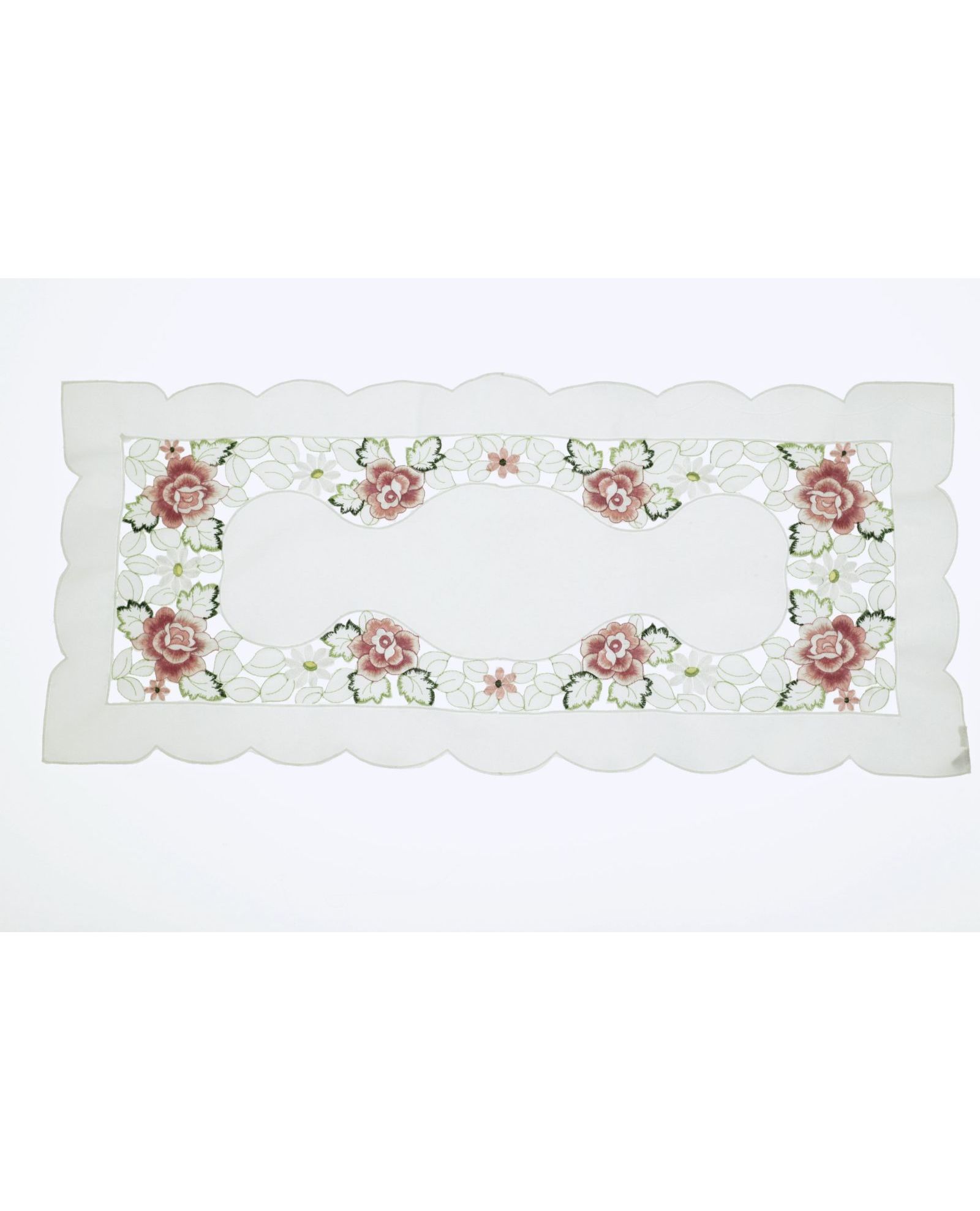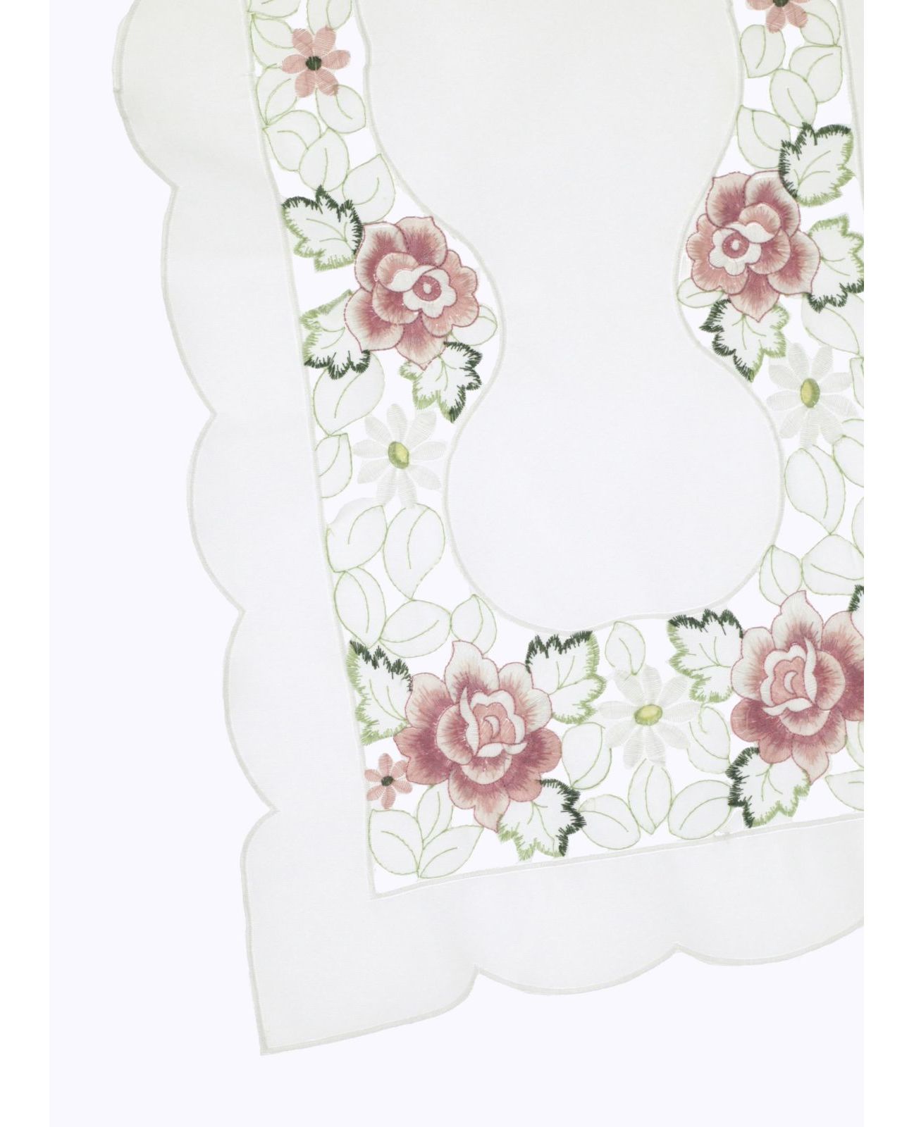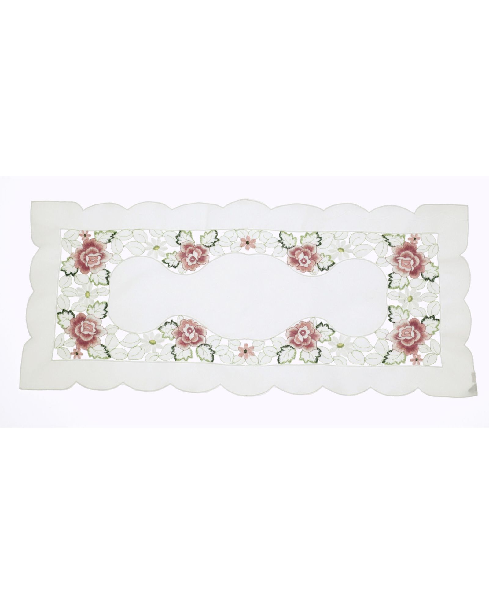 Салфетка белого цвета с ажурной вышивкой цветов 40х85 см