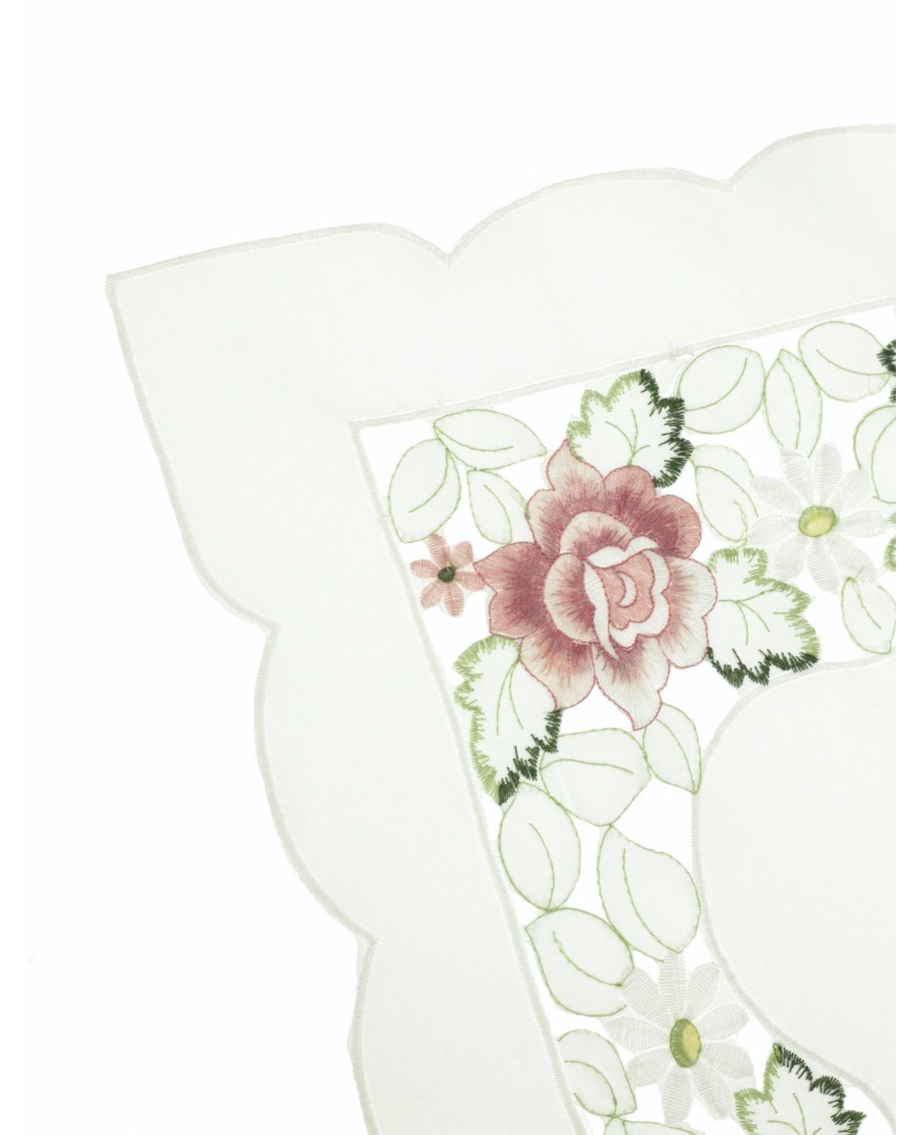 Эта элегантная салфетка белого цвета с нежной ажурной вышивкой цветов станет отличным дополнением к вашему столу. Вышивка придает изделию утонченность и элегантность, а классический белый цвет делает его идеальным как для праздничных событий, так и для повседневного использования.