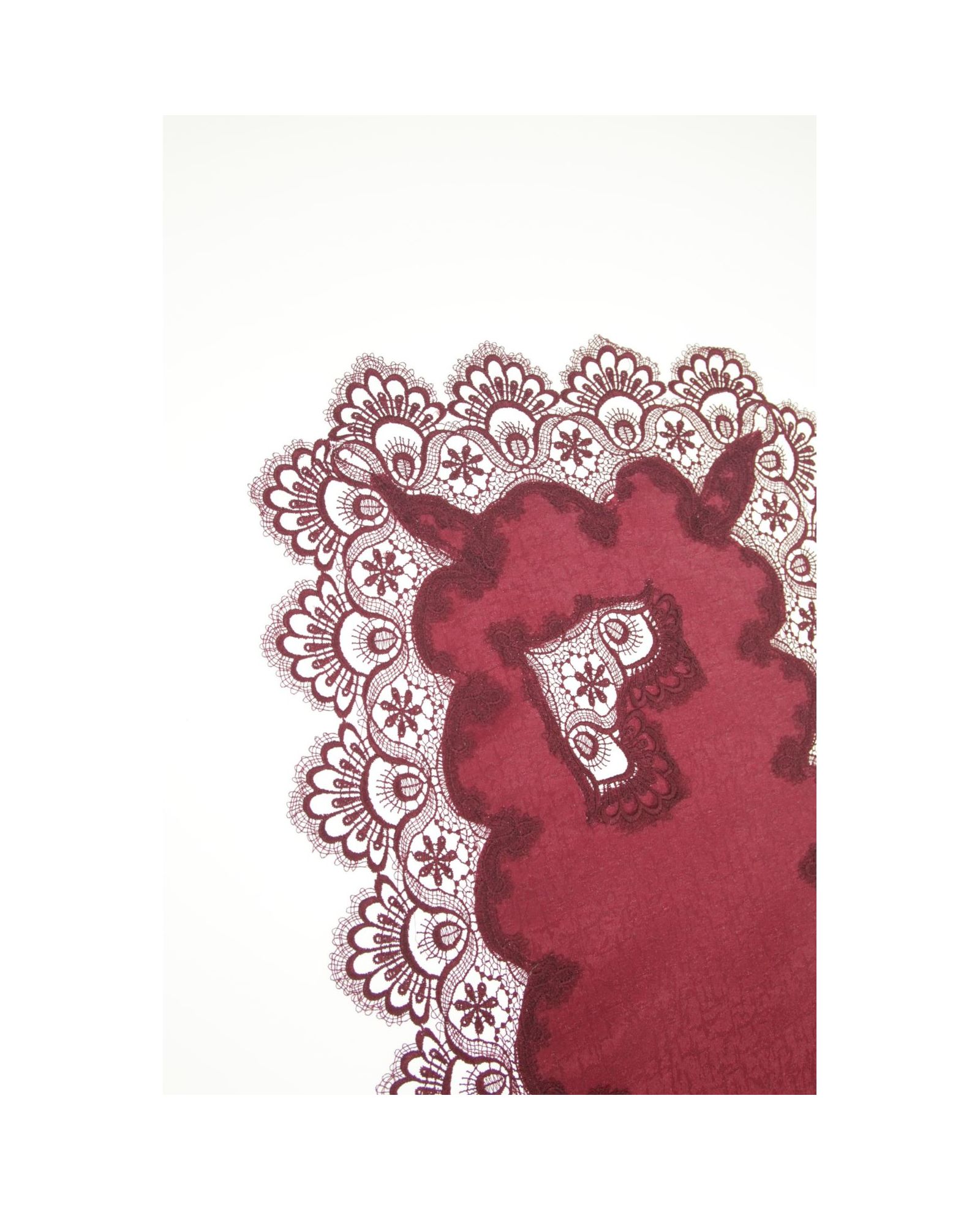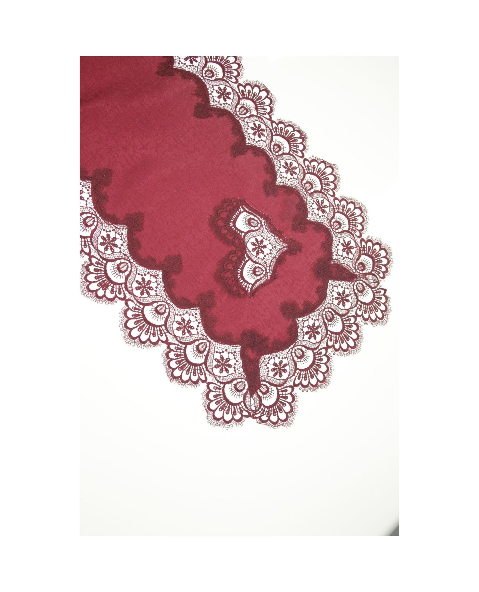 Роскошная салфетка глубокого бордового оттенка станет стильным украшением вашего стола. Кружевная отделка по краям придаёт изделию утончённость и элегантность, делая его подходящим как для будней, так и для праздничных случаев.