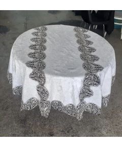 Просили отзыв пишу получил скатерть,кружевная скатерть на круглый стол ,просто очень очень красивая,на круглый стол 180 см нам очень подошла,мама довольна мне приятно.Качеством и пошивом доволен.