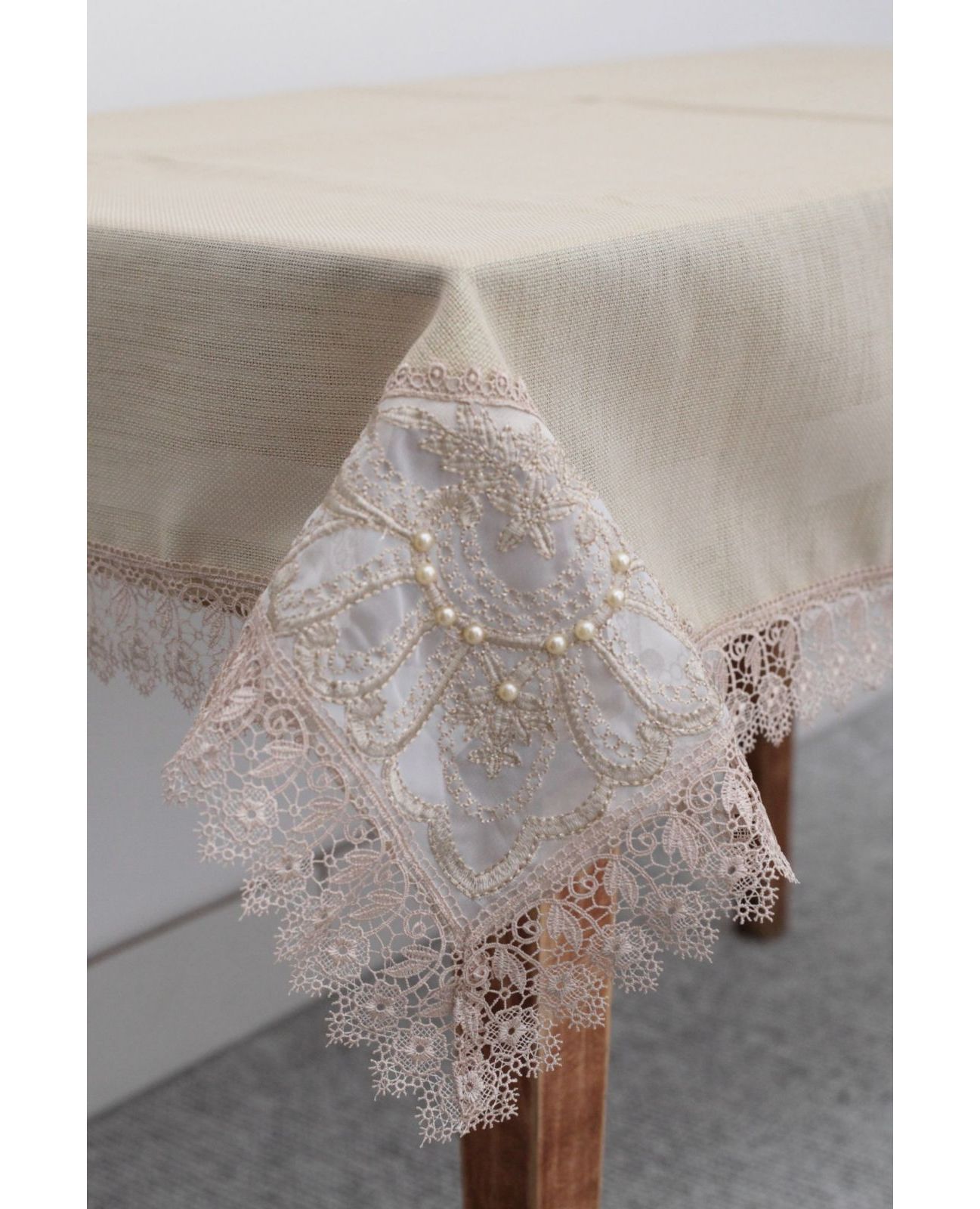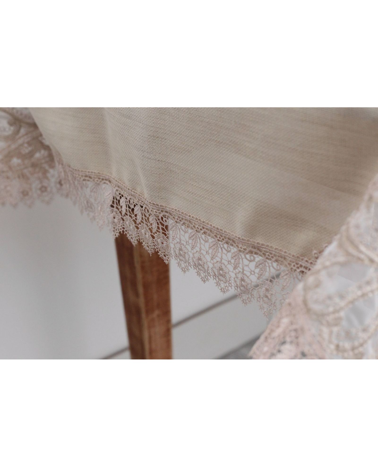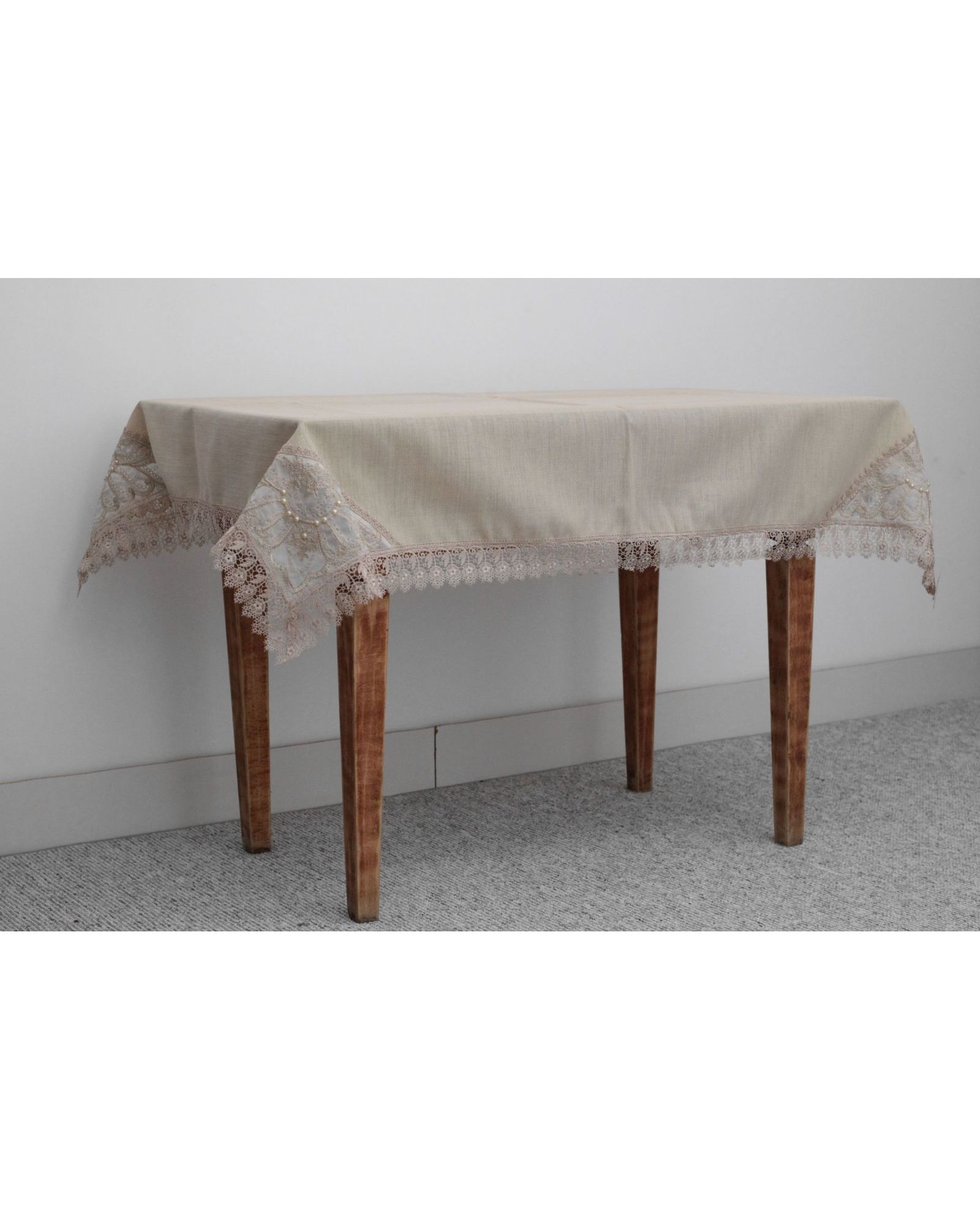 Скатерть 110×160 см, кофейного цвета с кружевным отделкой, полиэстер 100%