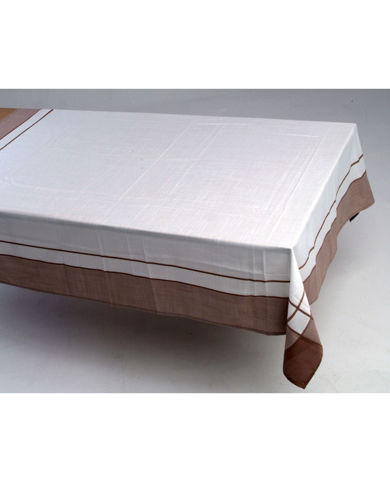 Скатерть 130×180 см, белого цвета с коричневой полосой, полиэстер 100%