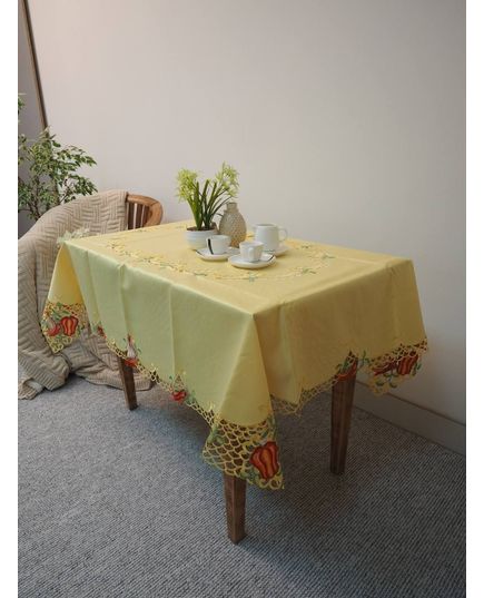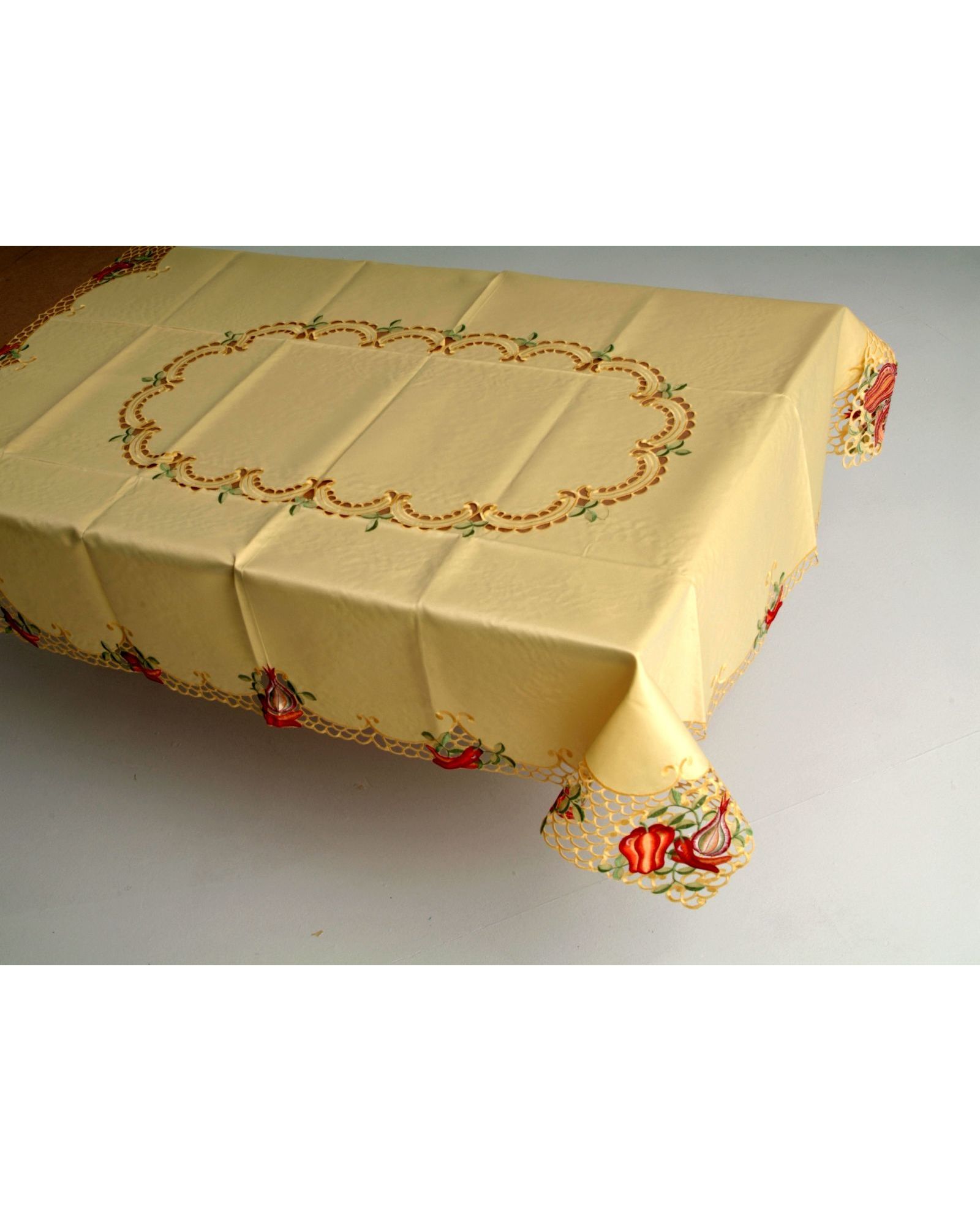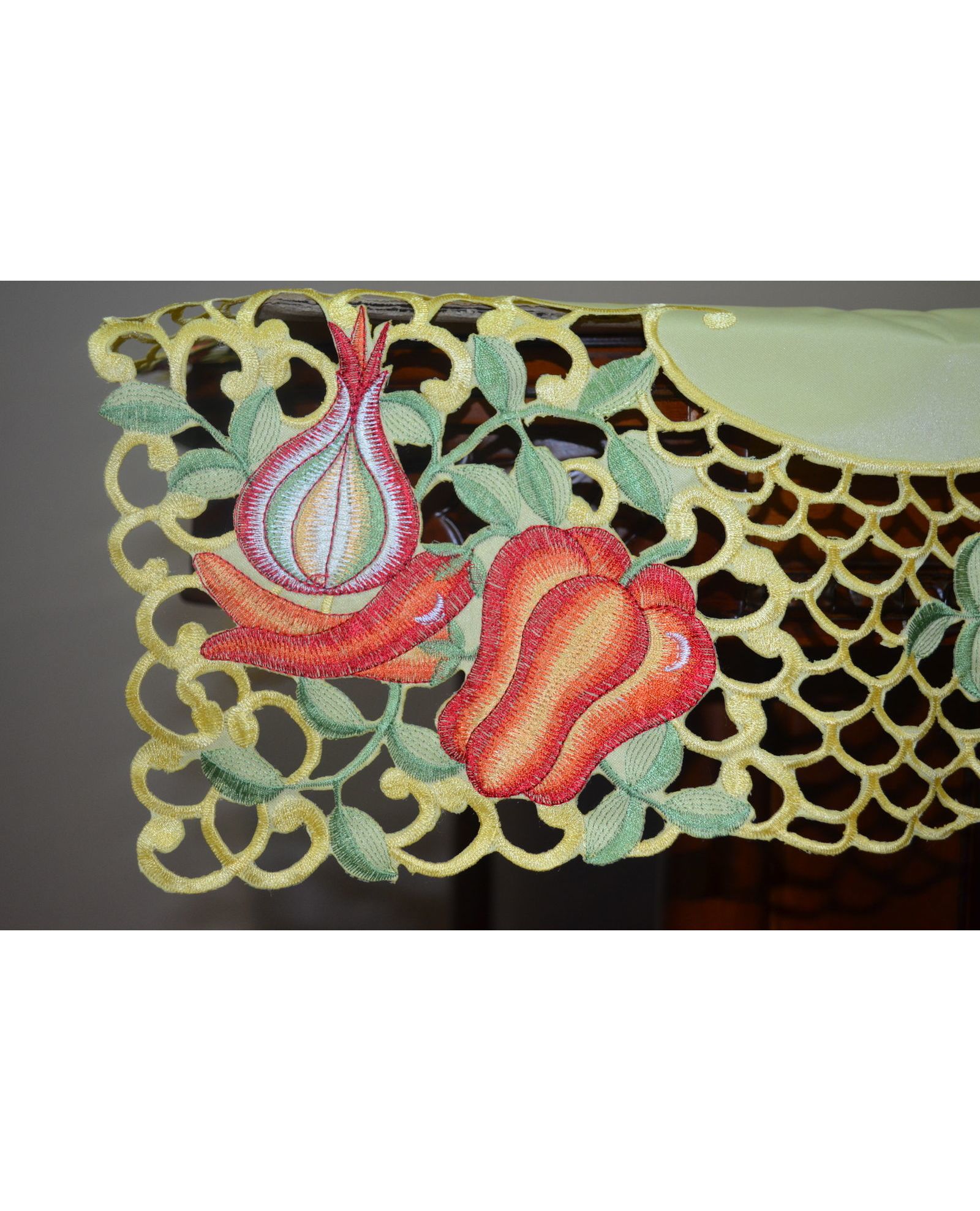 Скатерть желтого цвета с ажурными краями и вышивкой перца