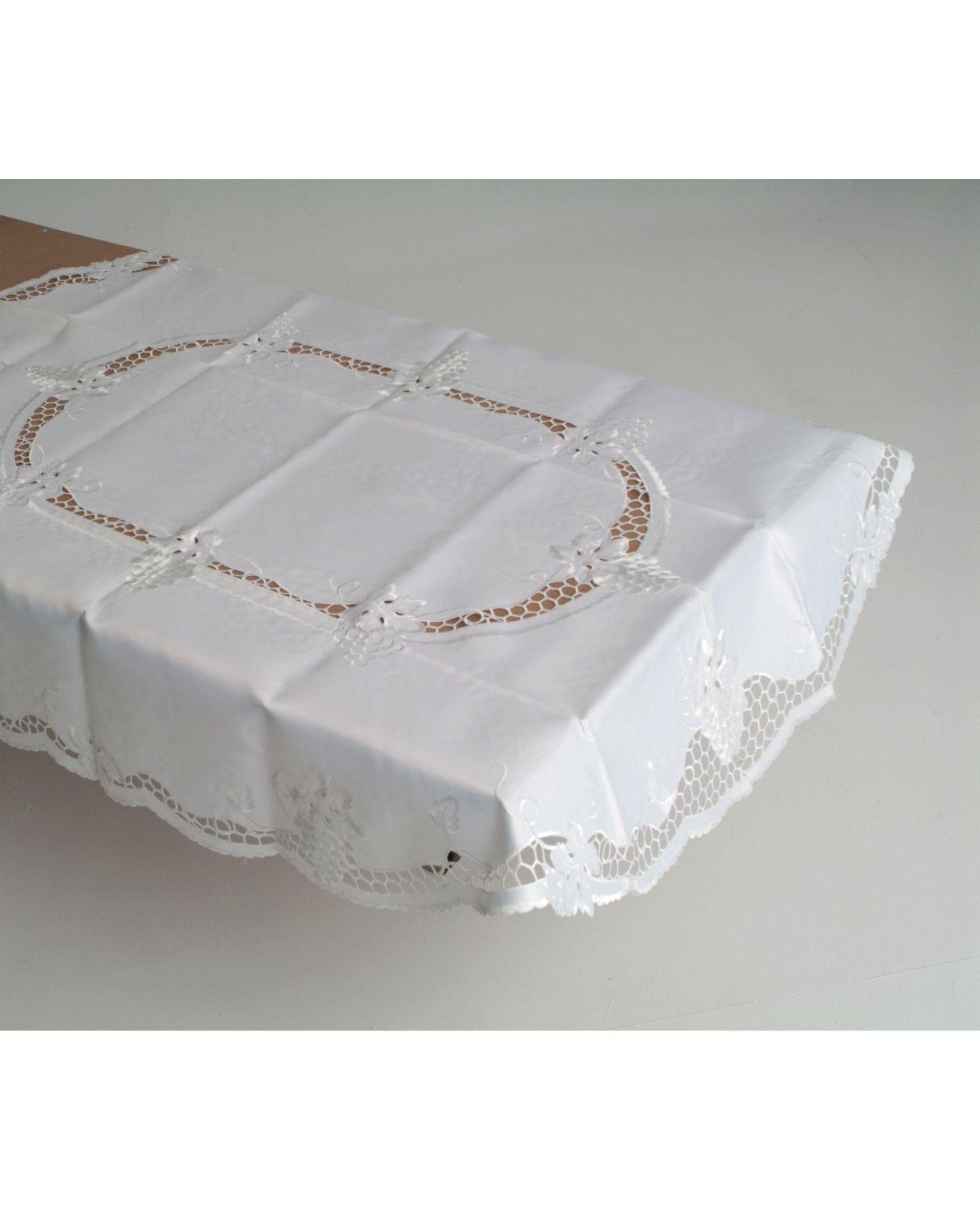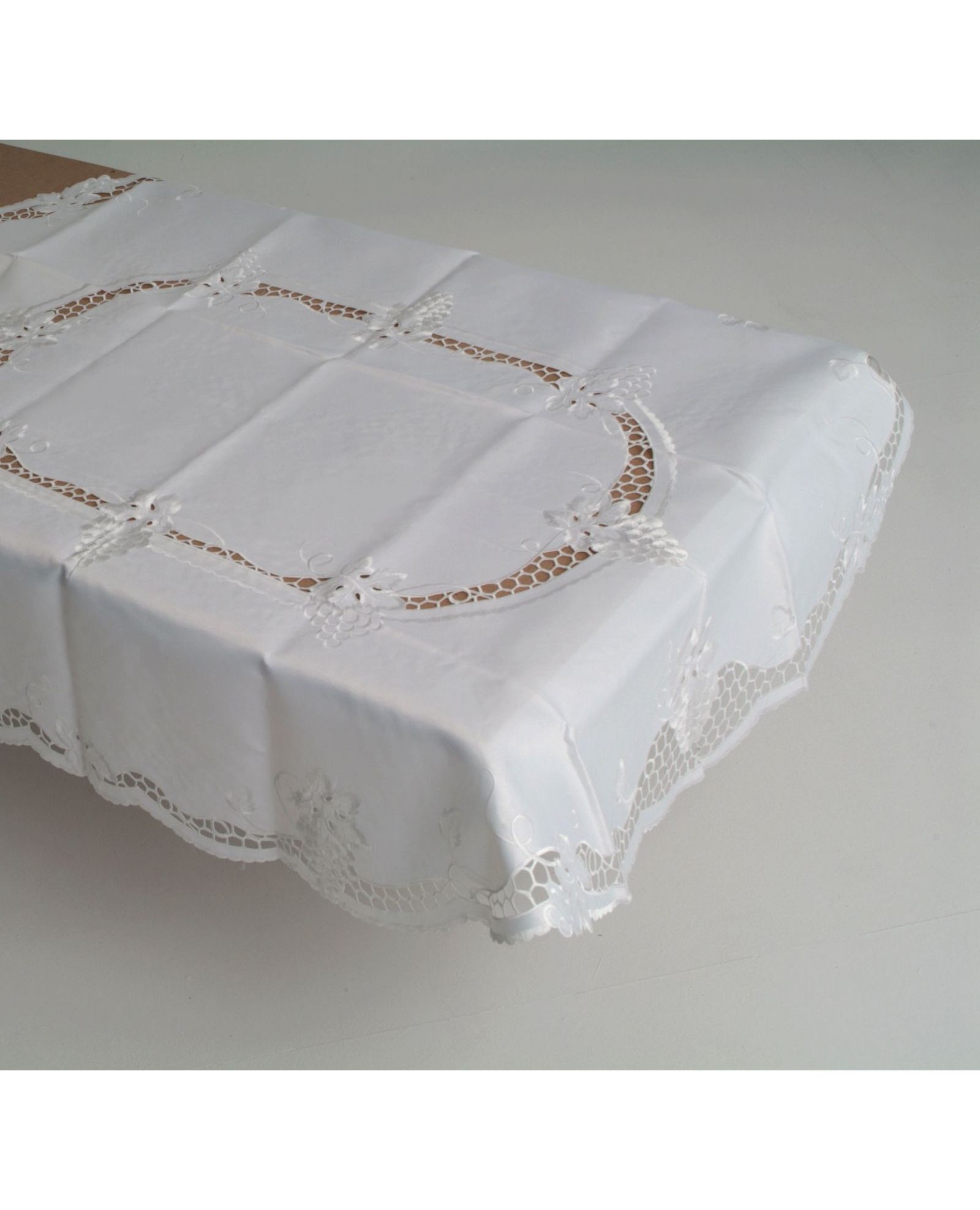 Эта элегантная скатерть размером 130x170 см станет отличным дополнением для овального стола. Белое полотно с вышивкой гроздьями винограда придает изделию утонченность, а волнистые края добавляют легкости и изысканности. Изготовлена из 100% полиэстера, скатерть устойчива к износу и легко очищается, сохраняя свой вид даже после многократных стирок.