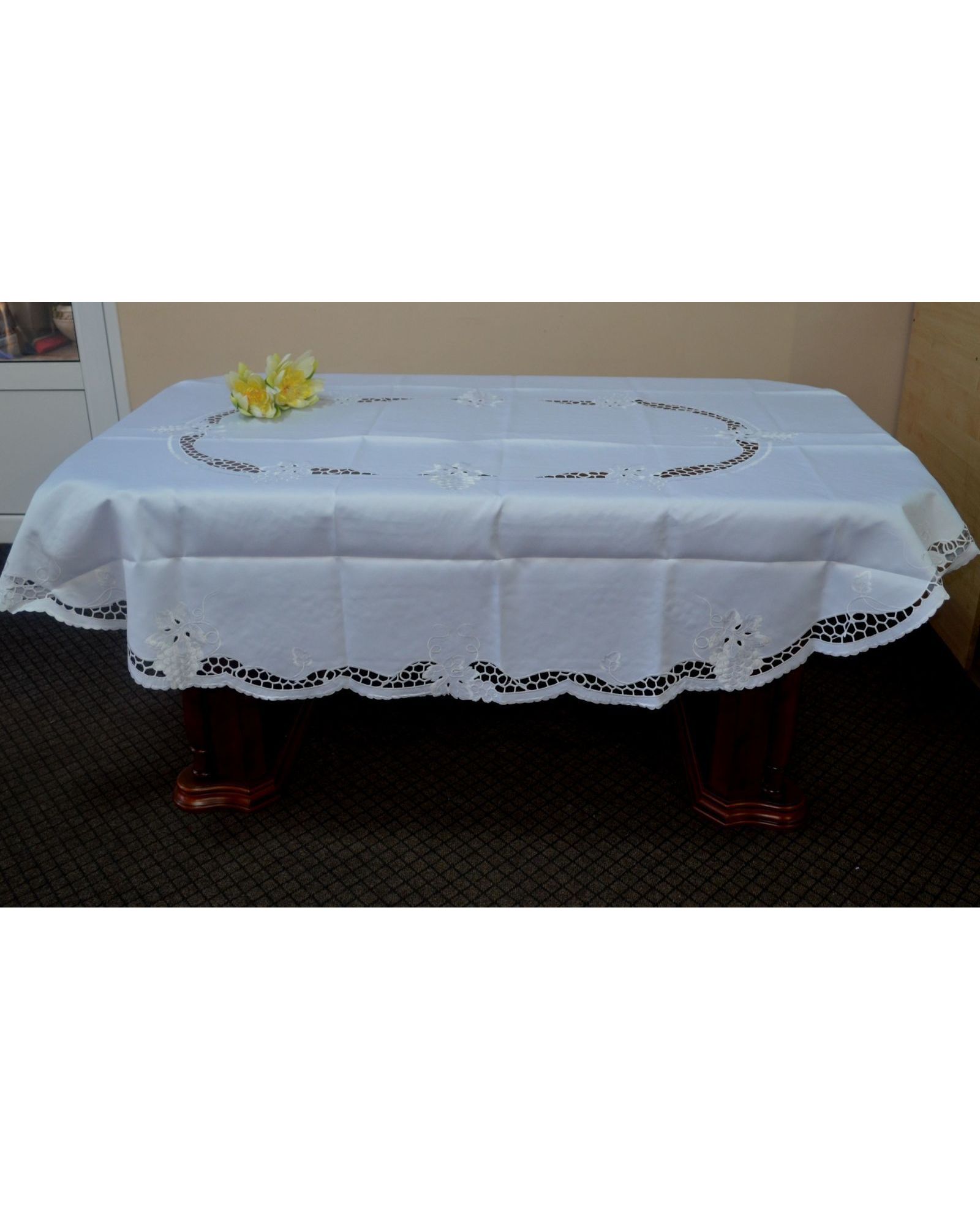 Скатерть белого цвета с вышивкой гроздьями винограда и волнистыми краями для овального стола