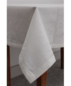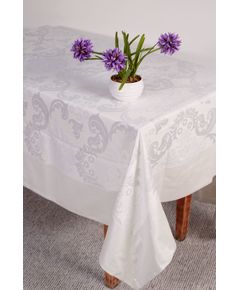 Скатерть 160х220 см водоотталкивающая белого цвета с узором Элегантная скатерть белого цвета станет прекрасным украшением вашего стола. Оригинальный узор, украшающий края и середину изделия, придает ему изысканность и стиль. Благодаря 100% полиэстеру, скатерть практична в...