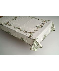 Скатерть 160х220 см ажурная с вышитыми цветами золотистой нитью, с волнистыми краями, зелёного цвета Эта стильная скатерть зелёного цвета станет прекрасным дополнением вашего интерьера. Ажурный материал придаёт лёгкость, а вышитые золотистой нитью цветы добавляют элегантности и...