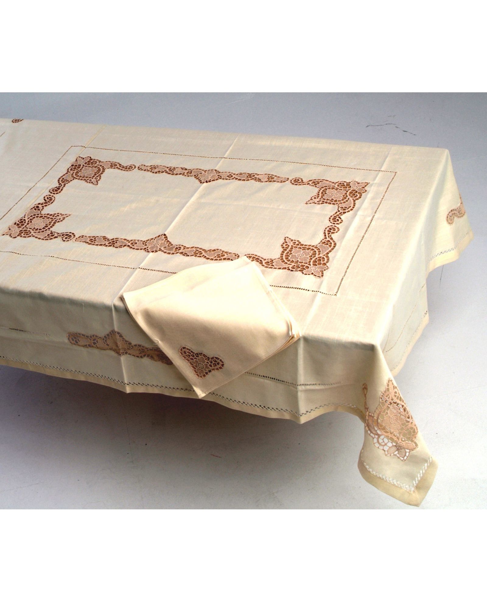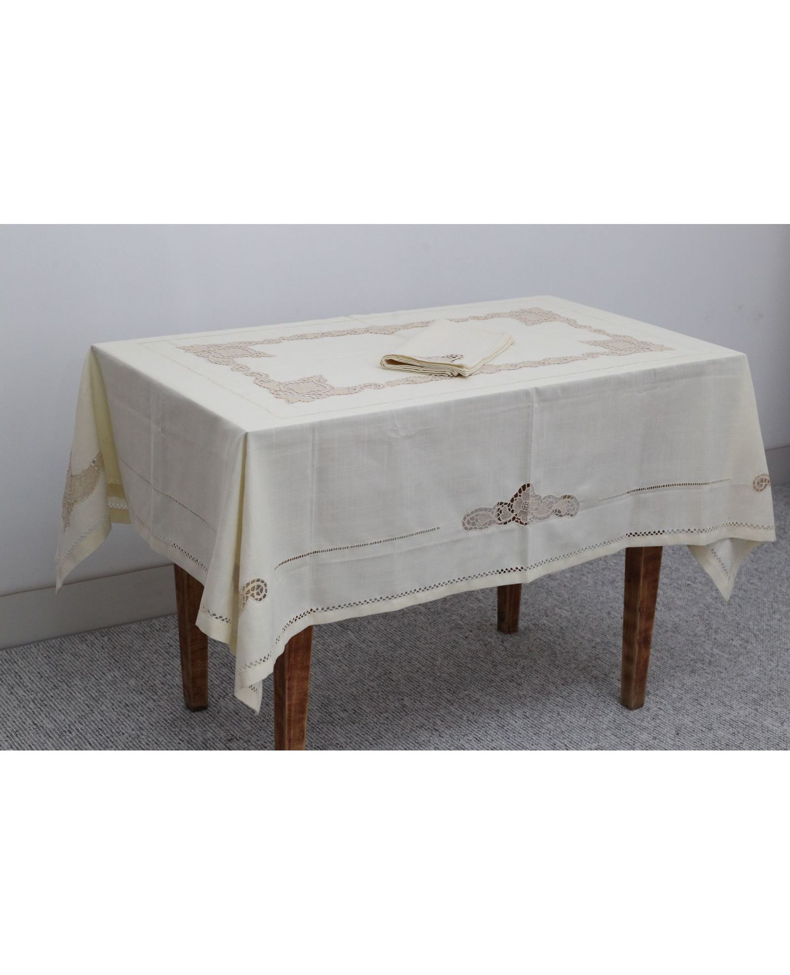 Скатерть 150х220 см кремового цвета с мережкой и комплектом салфеток