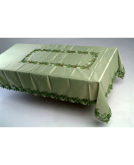 Скатерть 160х240 см с вышивкой листьев и волнистыми краями, зелёного цвета