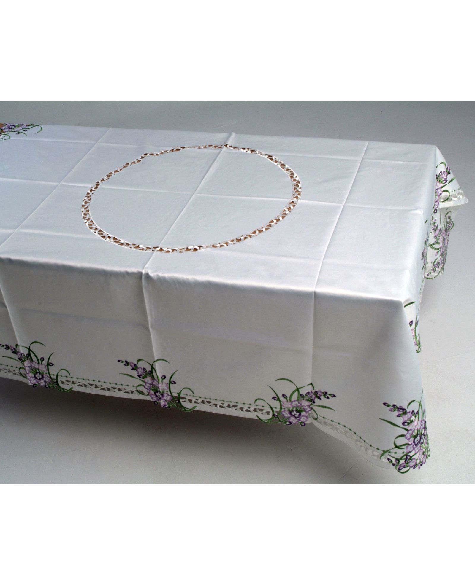 Скатерть 160х240 см с яркой вышивкой цветов и ажурной полосой по низу, белого цвета