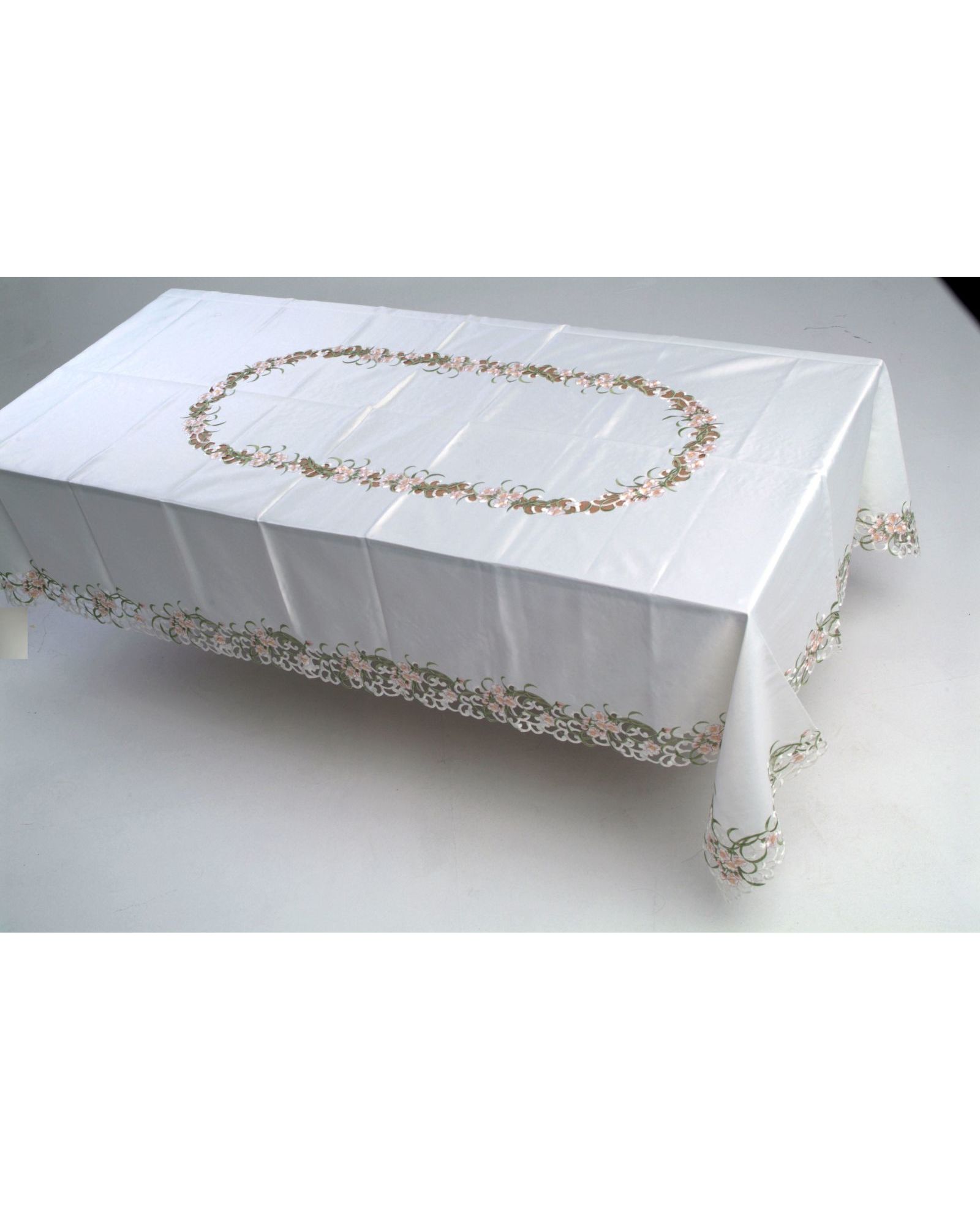Скатерть 160х240 см с яркой вышивкой цветов и волнистыми краями, молочного цвета