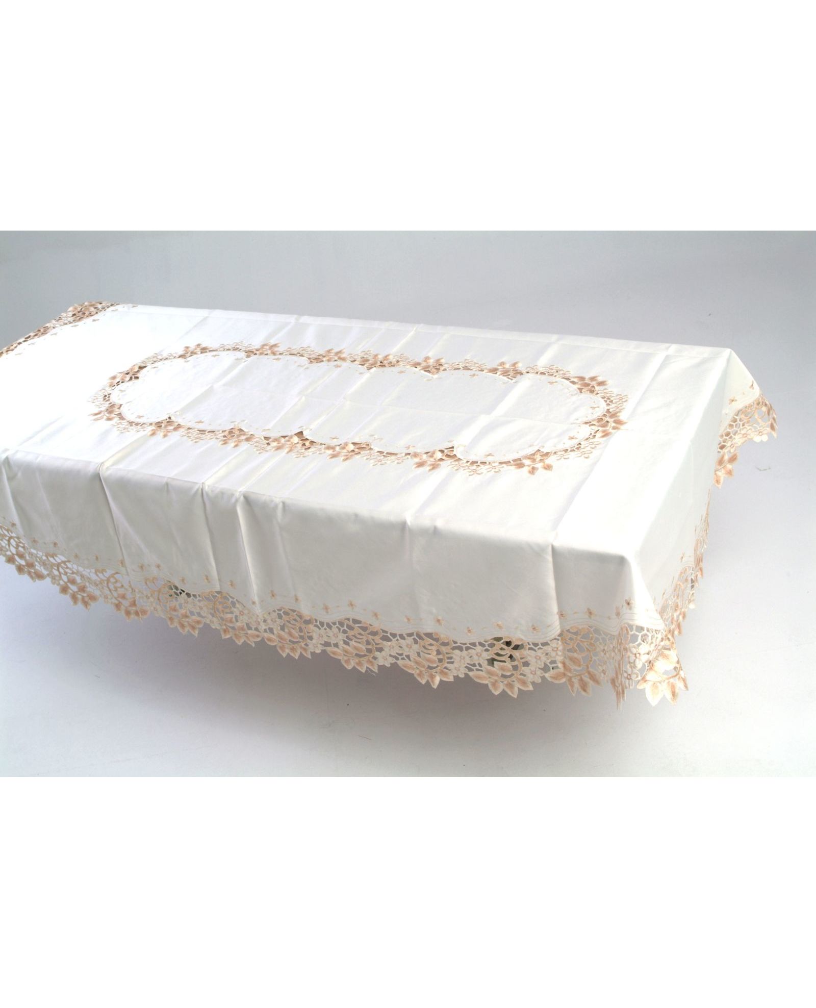 Скатерть 160х240 см с вышивкой и ажурными краями, бежевого цвета, на овальный стол