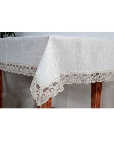 Скатерть 160х220 см золотистого цвета с кружевом по краям