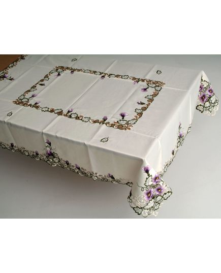 Скатерть 160х220 см молочного цвета с вышитыми цветами и волнистыми краями