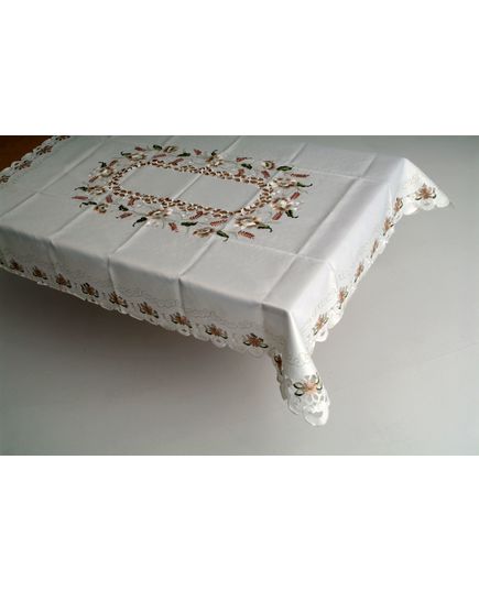 Скатерть 160х220 см с вышитыми цветами и волнистыми краями, полиэстер 100%, молочного цвета