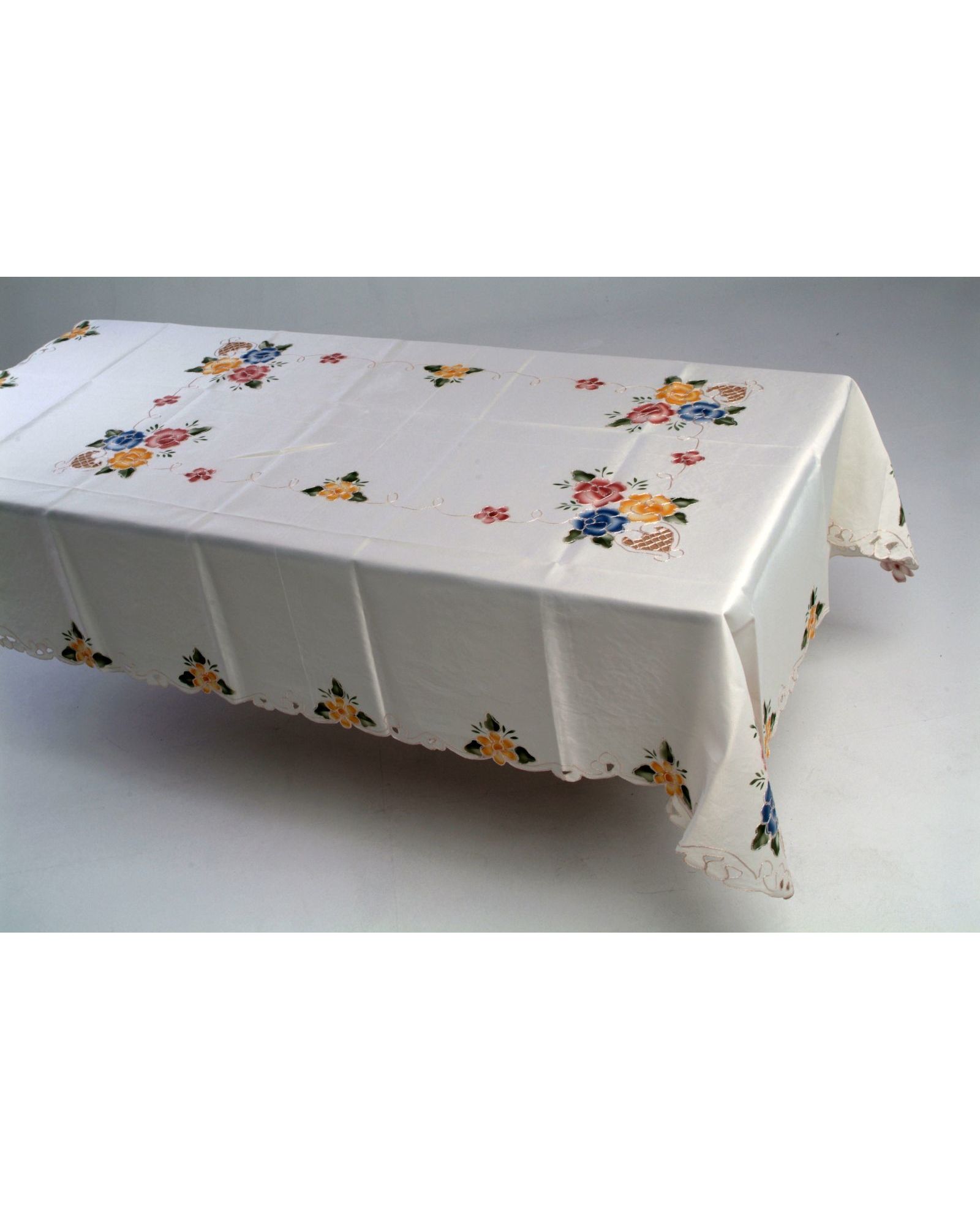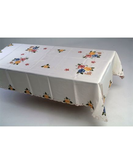 Скатерть 160х220 см молочного цвета с вышитыми цветами и волнистыми краями — элегантный акцент для вашего стола