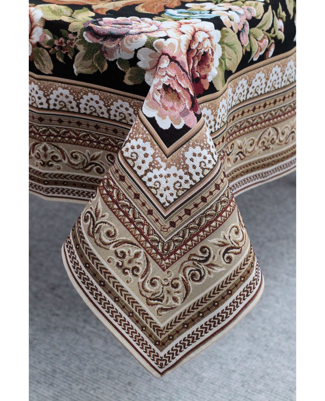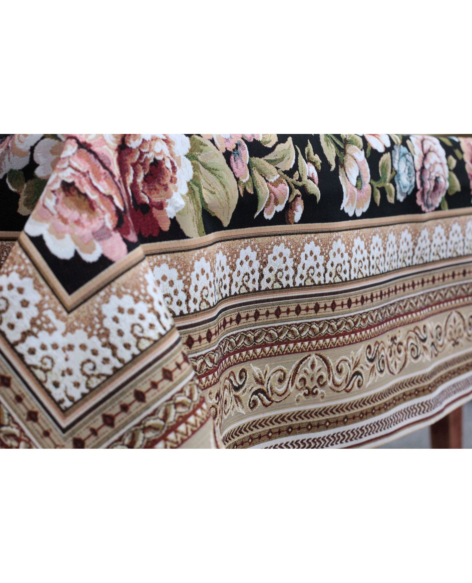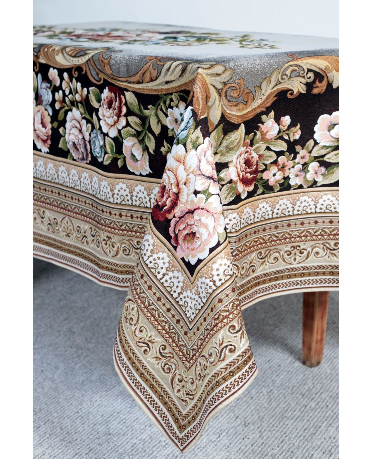 Скатерть 160х300 см, украшена яркими цветами, гобелен, кофейного цвета, производитель: Турция