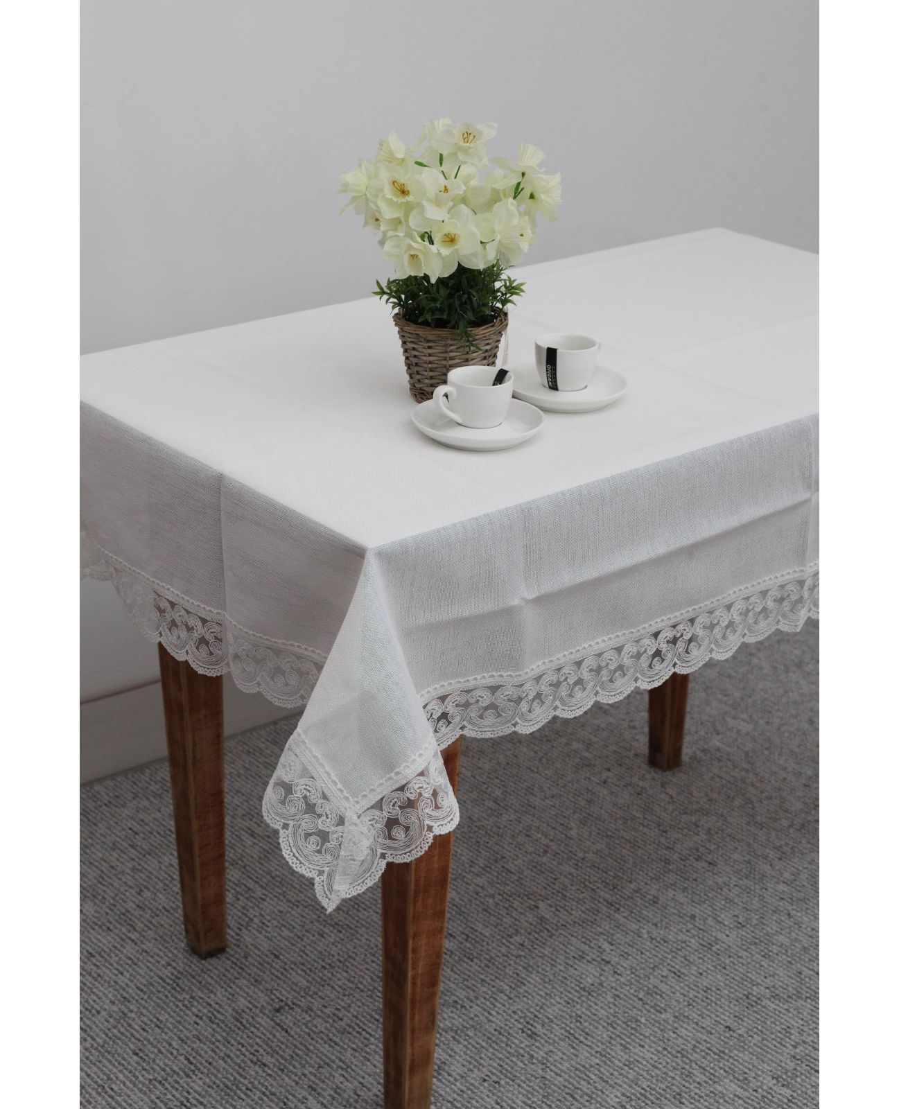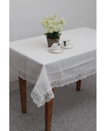 Скатерть 160х300 см — элегантность в каждой детали. Украшенная изысканным кружевом и волнистыми краями, она станет роскошным акцентом на вашем столе. Белый цвет с деликатным блеском люрексовой нити придаёт интерьеру праздничность и утончённость. Изготовлена из качественного 100% полиэстера, эта скатерть не только красива, но и практична — легко стирается, быстро сохнет и надолго сохраняет свой безупречный вид. Произведено в Турции.