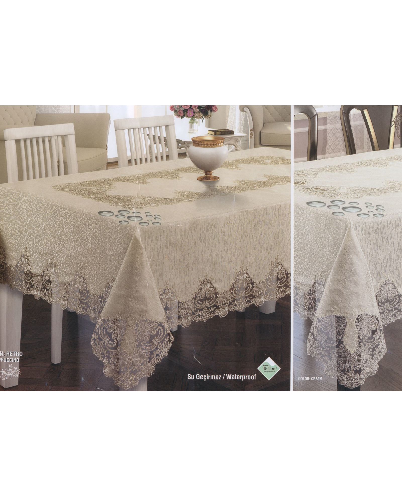 Скатерть 160х350 см — элегантный выбор для вашего дома. Изготовлена из высококачественного полиэстера, эта скатерть украшена кружевом по середине и краям. Она придаст изысканности и стиля любому столу. Доступна в двух цветах: молочном и бежевом, что позволяет выбрать вариант, который лучше всего подходит вашему интерьеру.