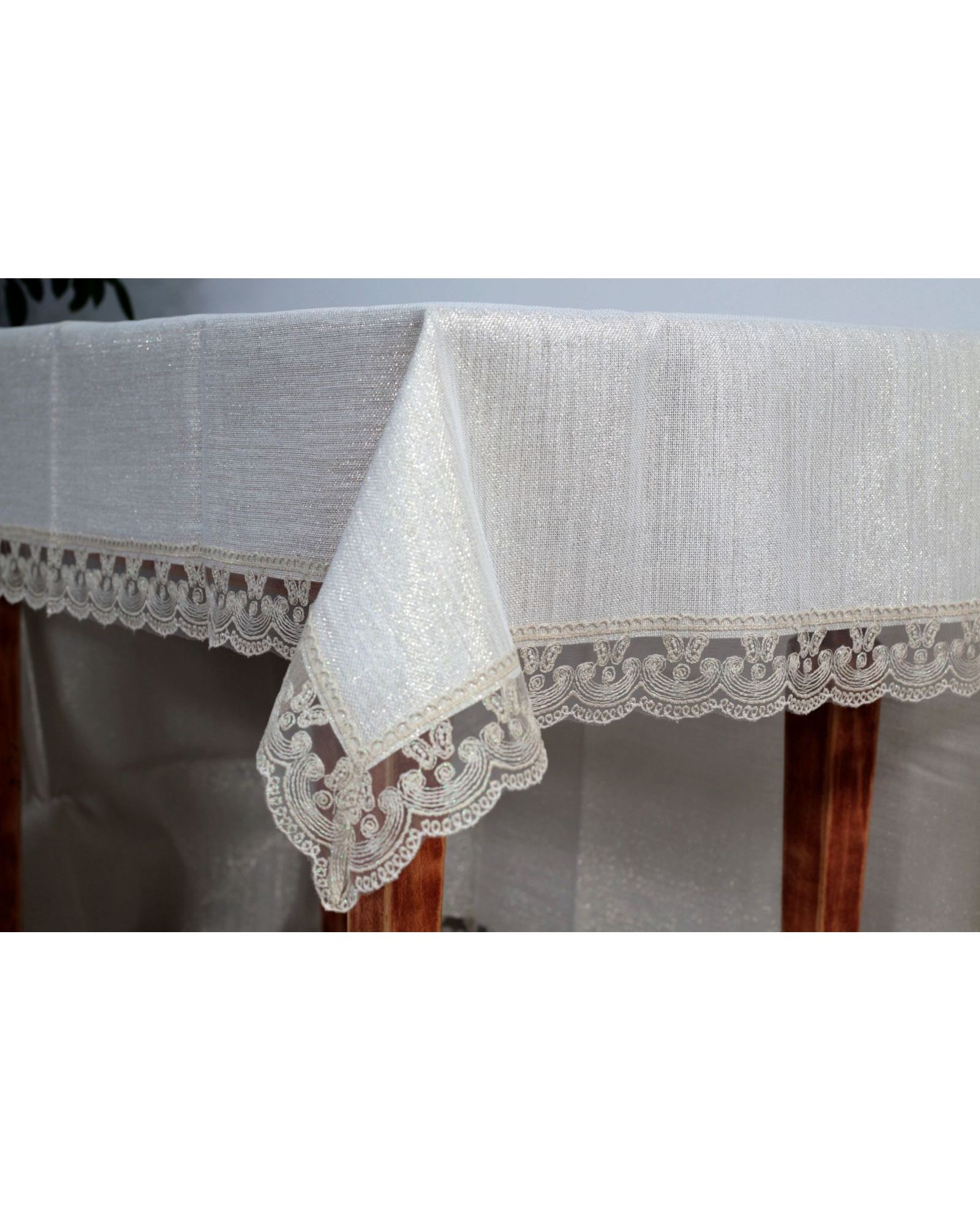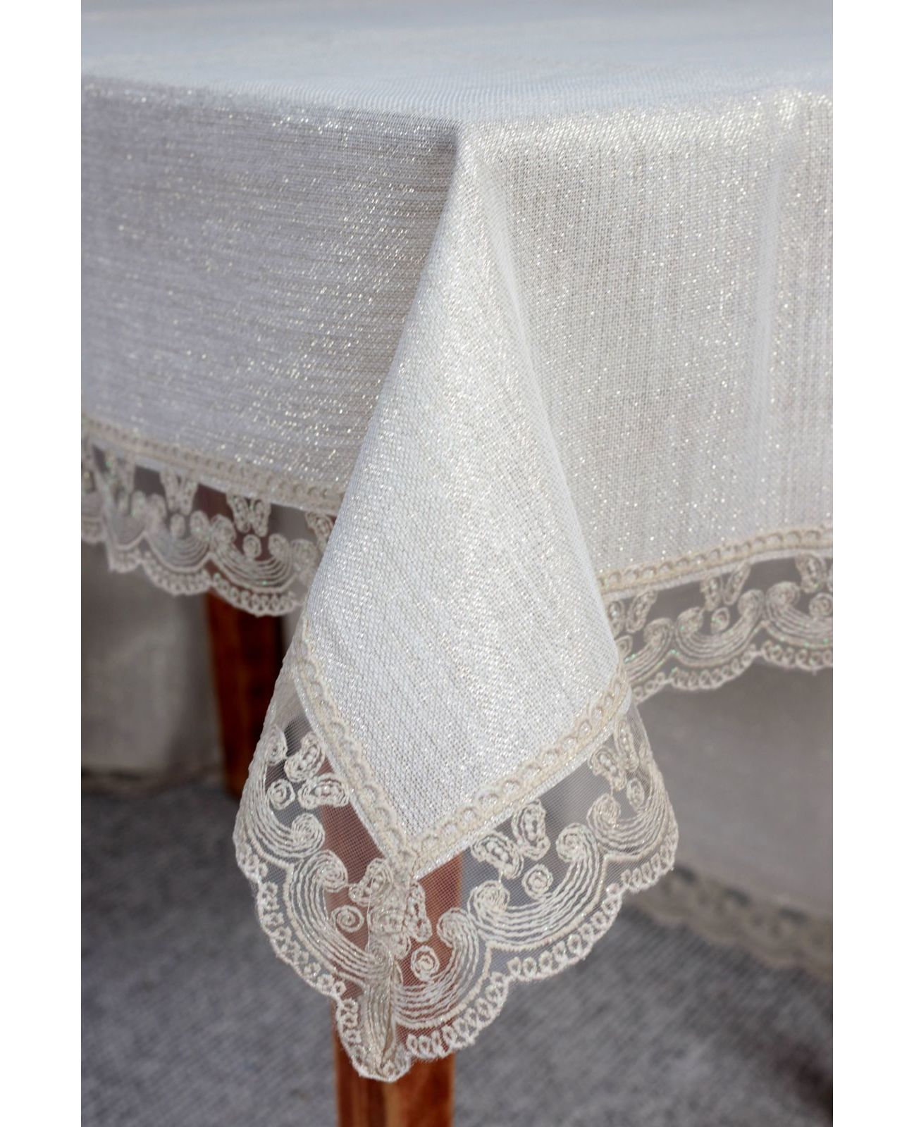 Скатерть 160х350 см, выполненная из полиэстера золотистого цвета. По краям она украшена кружевом, что придаёт элегантности и роскоши. Идеальный выбор для праздничных столов или создания изысканной атмосферы в вашем интерьере.