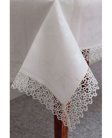 Скатерть 160х350 см — изысканное украшение для вашего стола, сочетающее элегантность и практичность. Выполненная из качественного полиэстера молочного цвета, она украшена нежным кружевом по краям, придающим ей особое очарование. Идеально подойдёт как для праздничных событий, так и для повседневного использования.