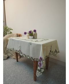 Скатерть молочного цвета с вышивкой цветов Эта скатерть размером 130x170 см молочного цвета станет отличным дополнением вашего стола. Вышивка цветов на ткани придает изделию нежность и элегантность. Изготовлена из 100% полиэстера, скатерть прочная, легко стирается и долго сохраняет...