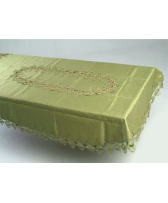 Скатерть 150х220 см украшена по середине и по краям кружевом с волнистыми краями, зелёного цвета, полиэстер 100% на овальный стол Эта элегантная скатерть зелёного цвета придаст вашему интерьеру свежесть и природный шарм. Кружево по середине и краям подчеркивает утонченность изделия,...