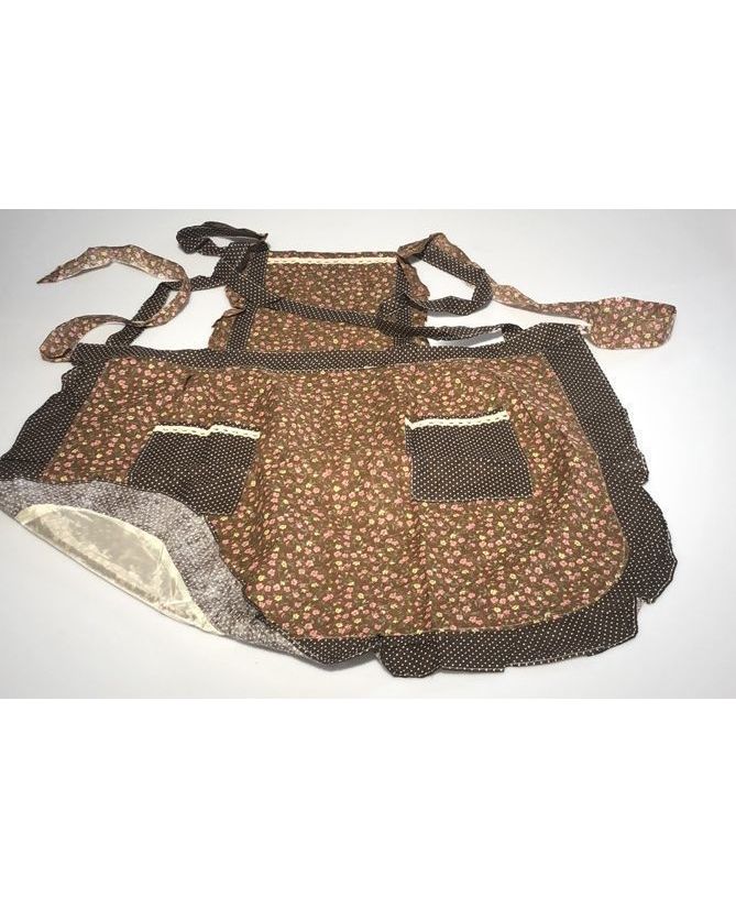Кухонный фартук коричневого цвета с рюшами и карманами