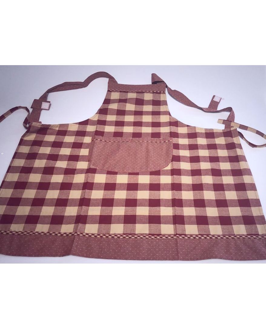 Удобный кухонный фартук в классическую клетку бордового цвета отлично подойдет для ежедневного использования. Натуральный хлопок приятный до тела, а вместительные карманы позволят держать нужные вещи под рукой во время готовки.