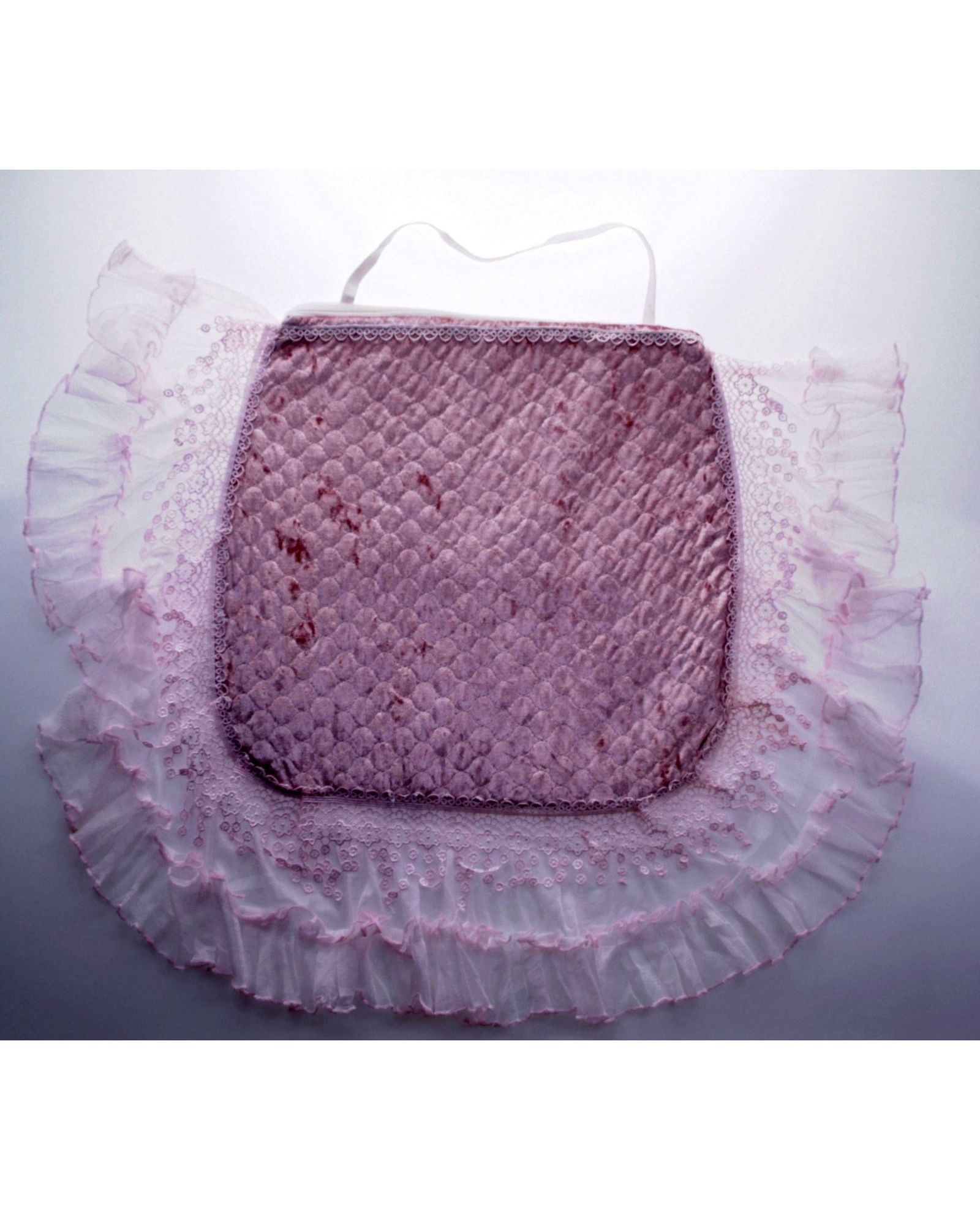 Сиденье на стул 40×45 см стёганое с рюшами и кружевом, розового цвета
