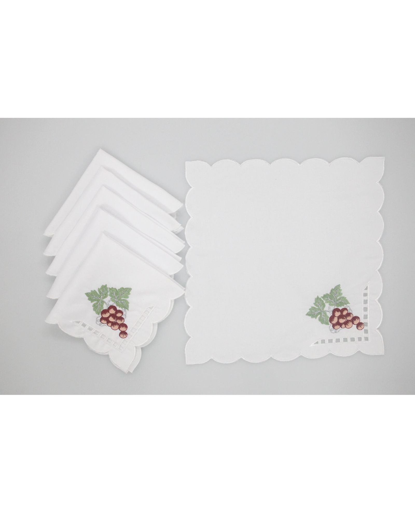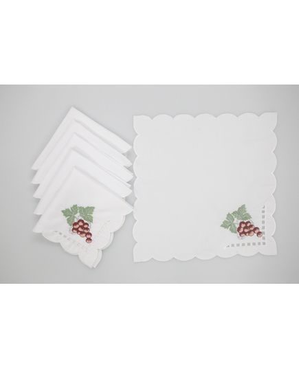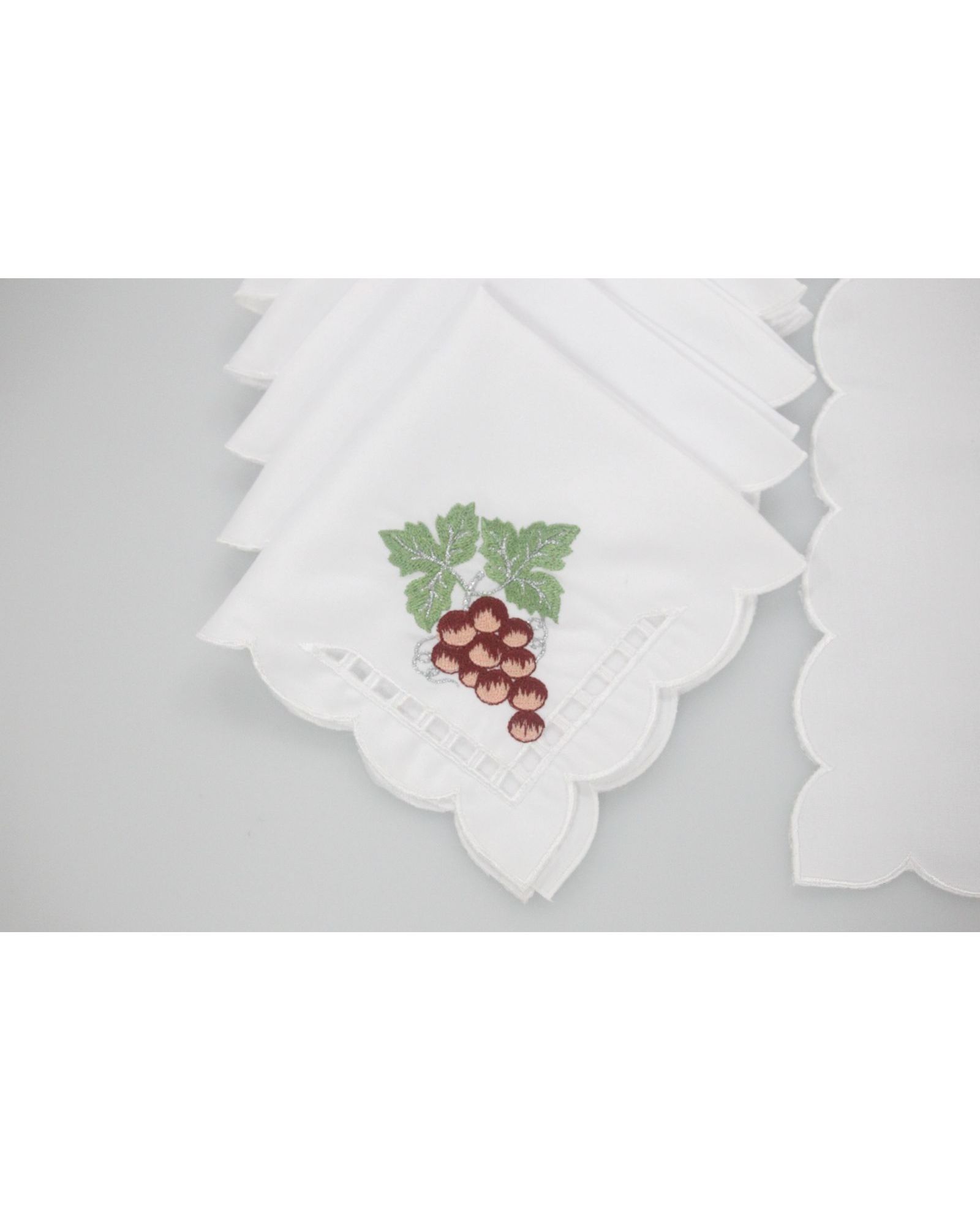 Набір серветок 28×28 см білого кольору з вишивкою винограду – витонченість у кожному штриху