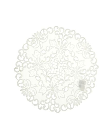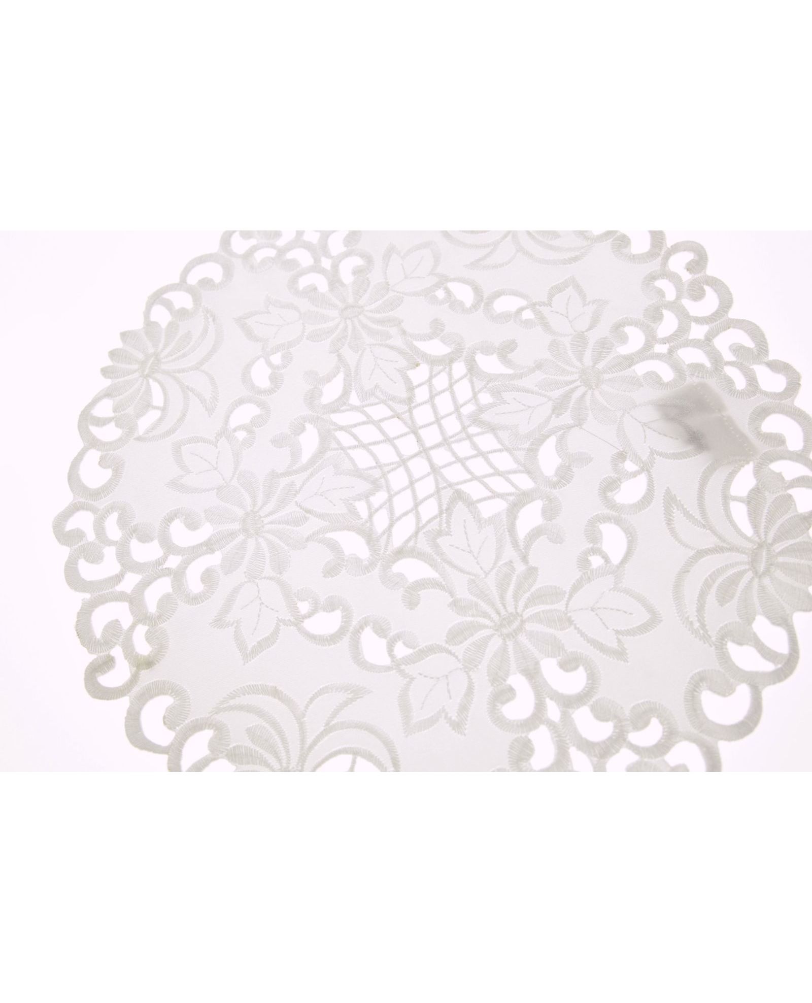 Серветка розміром 30х30 см стане ніжною та елегантною прикрасою вашого столу. Білий колір створює відчуття чистоти та святковості, а вишукане поєднання ажурного оздоблення й декоративної вишивки додає особливого шарму. Виготовлена з 100% поліестеру — практичного та довговічного матеріалу.