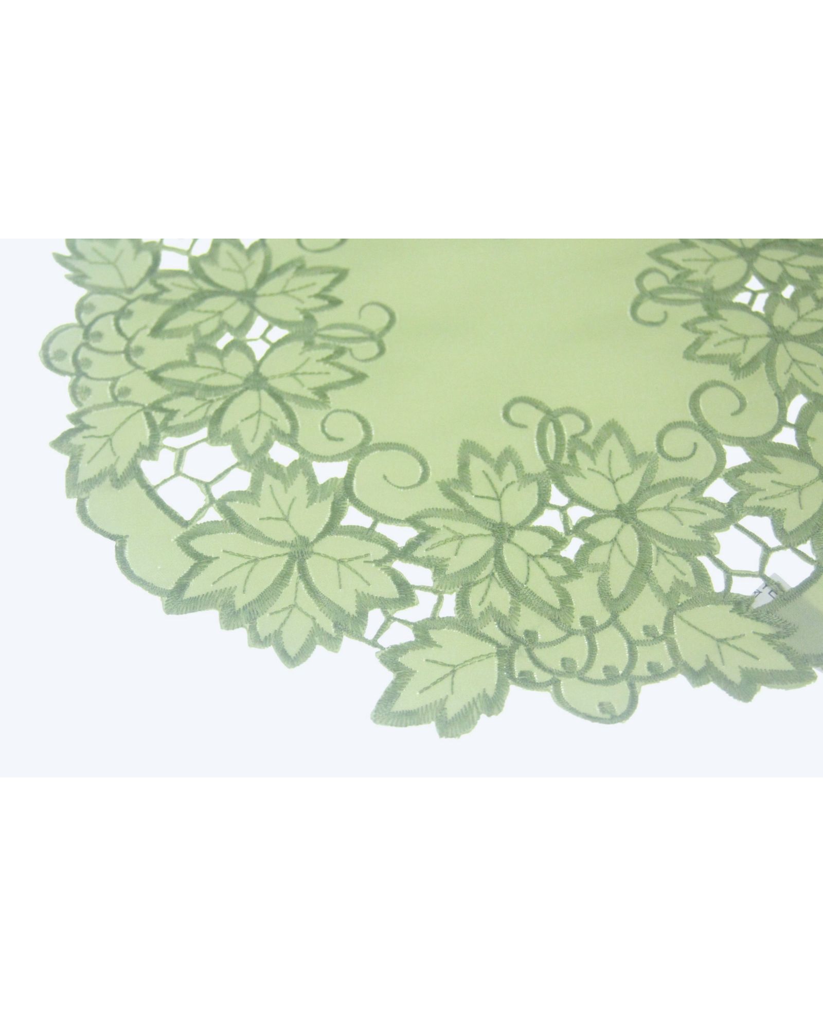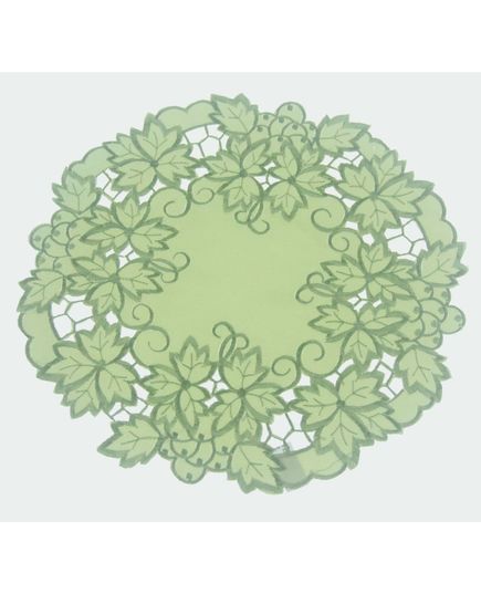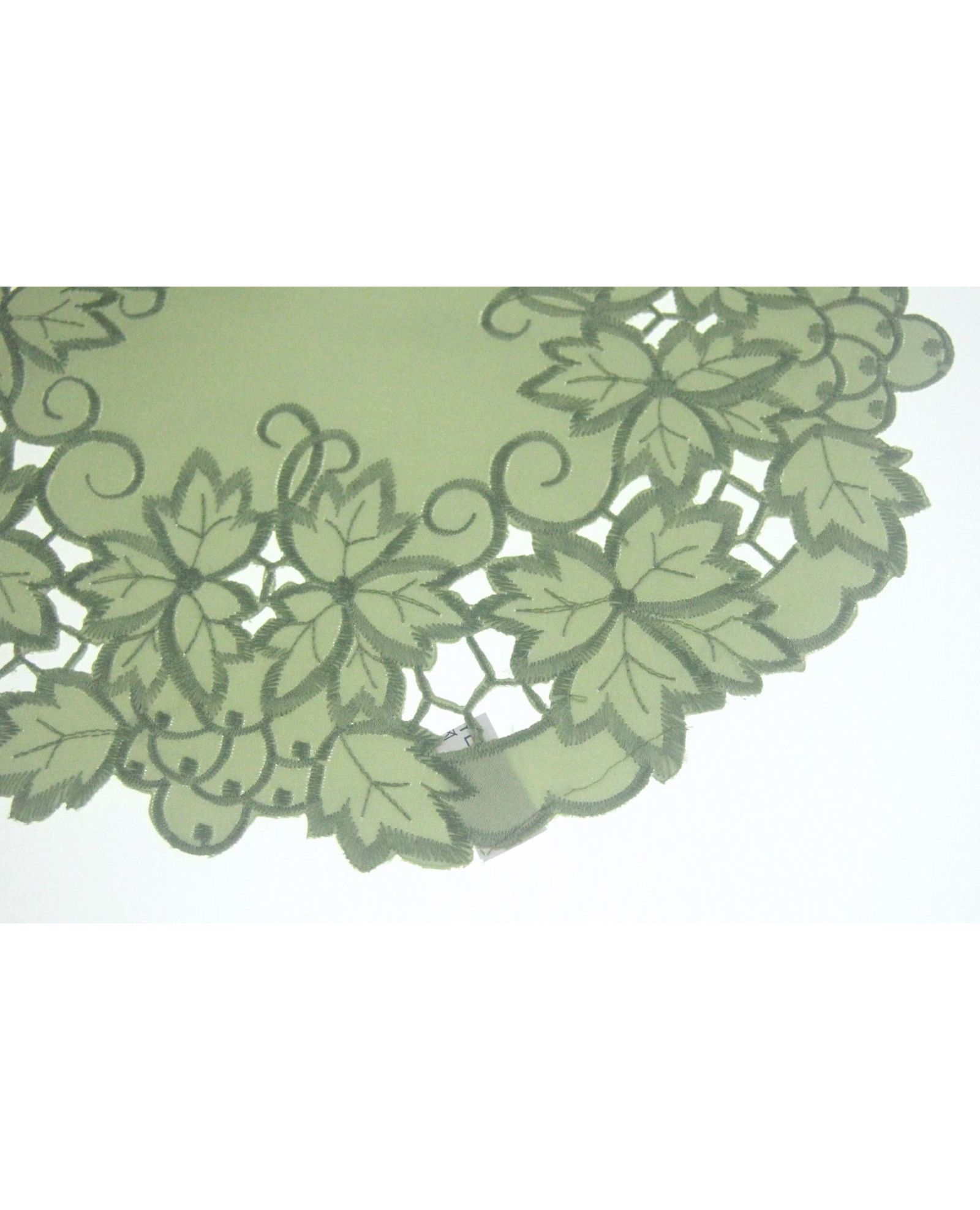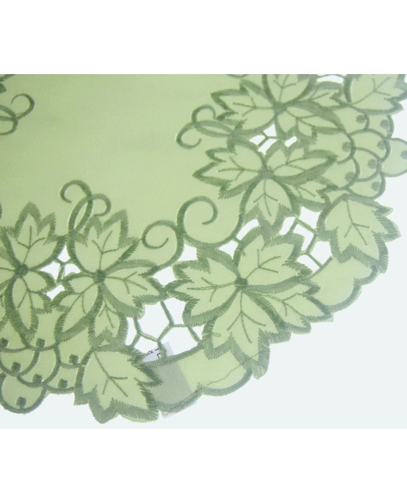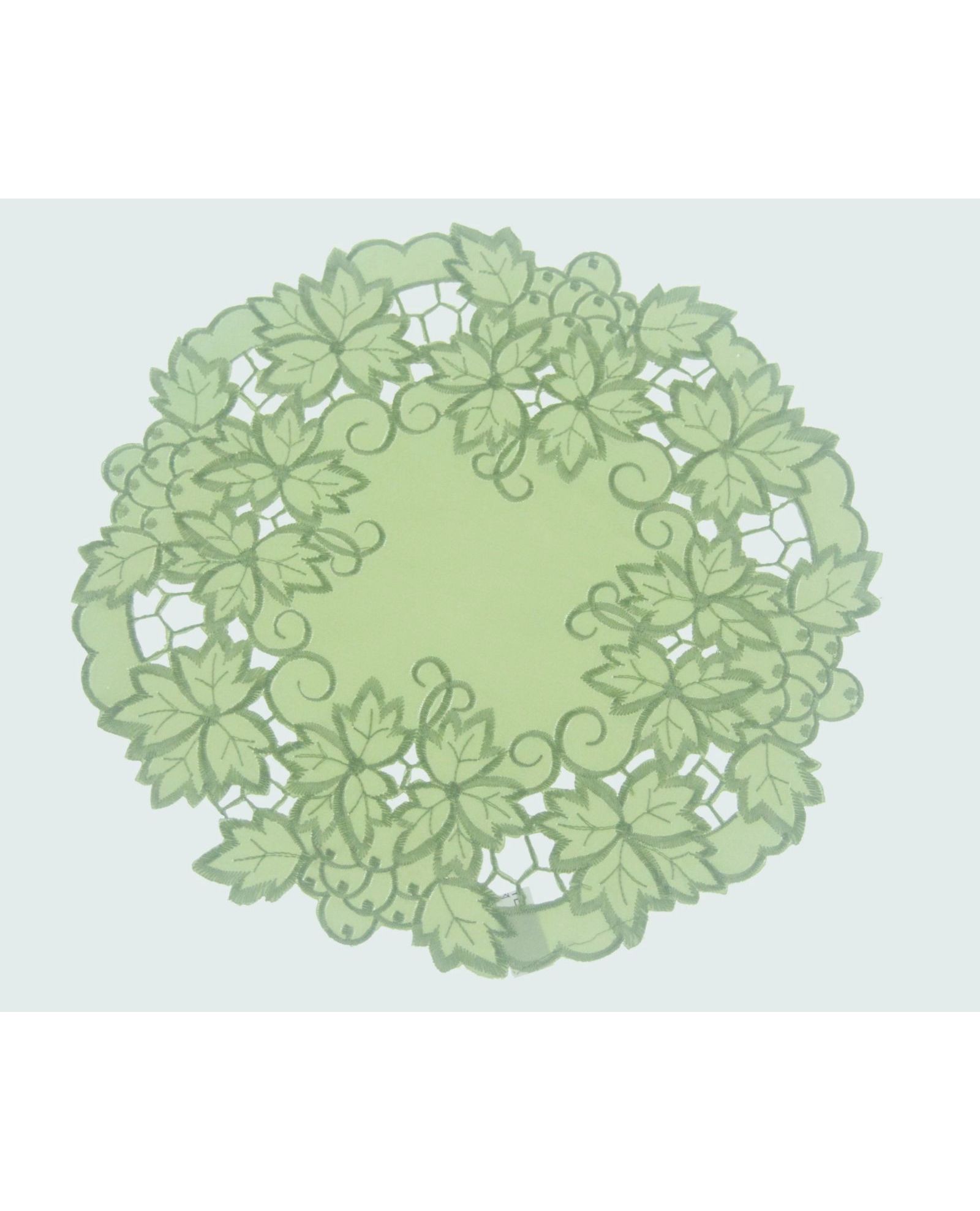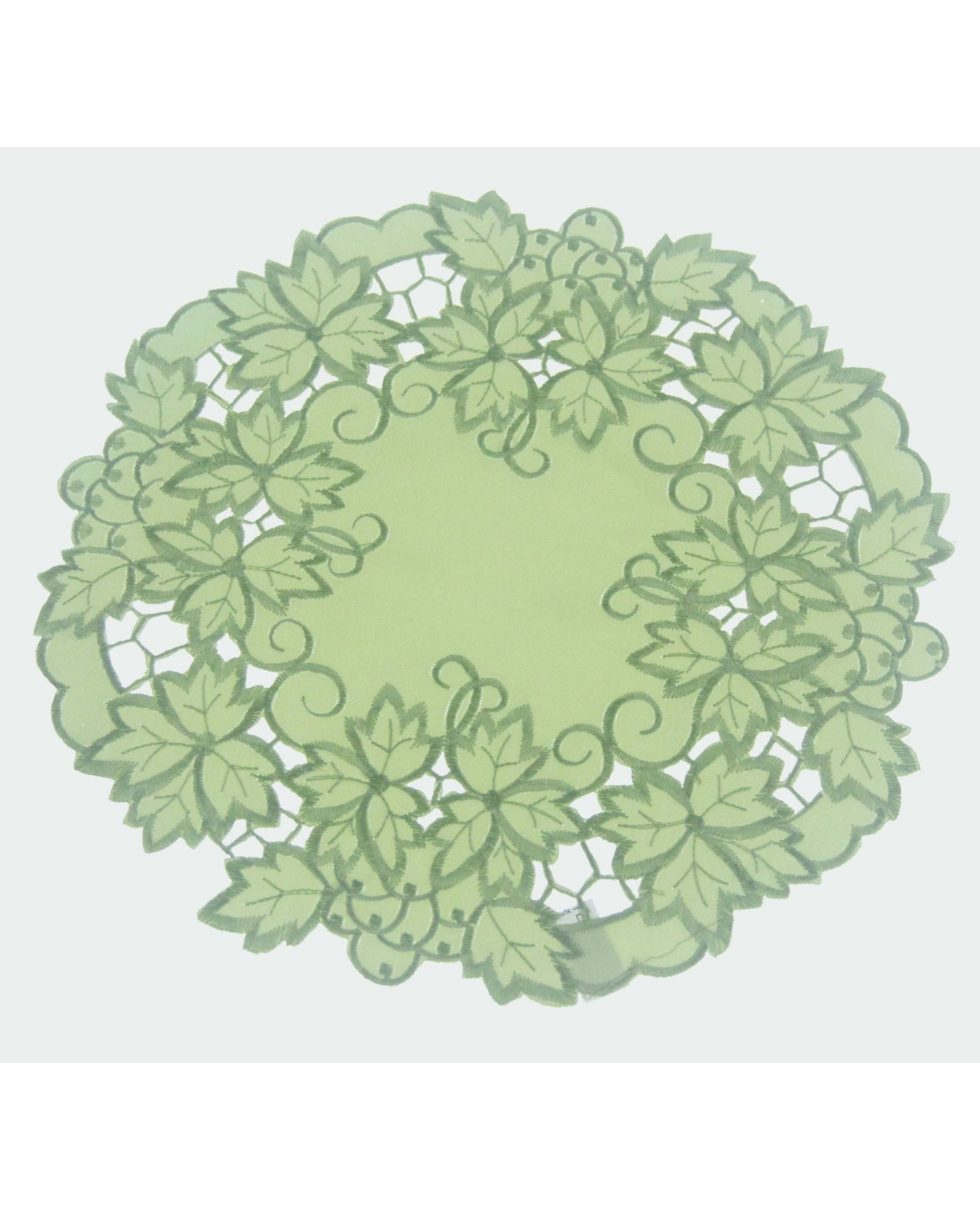 Вишукана серветка розміром 30х30 см прикрасить будь-який святковий або щоденний стіл. Вона виконана в насиченому зеленому кольорі, оздоблена ніжною вишивкою, витонченим ажуром та хвилястими краями. Завдяки якісному поліестеру виріб зберігає форму, не мнеться та легко переться.