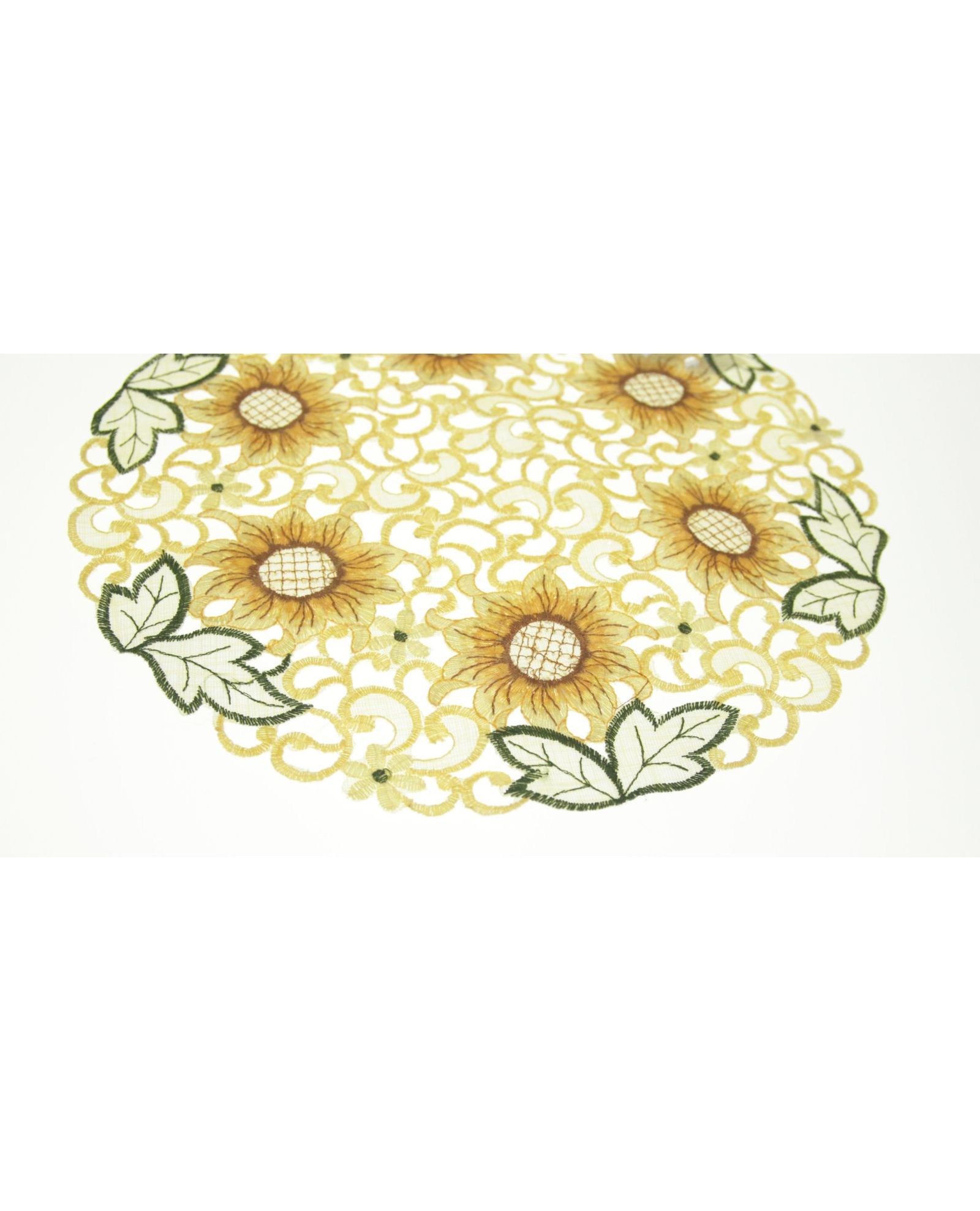 Невелика декоративна серветка розміром 30х30 см створена для стильного оздоблення столу. Яскравий жовтий колір додає настрою, а вишукане поєднання ажурного краю та вишивки надає виробу елегантності. Завдяки поліестеру серветка зберігає форму й легко переться.