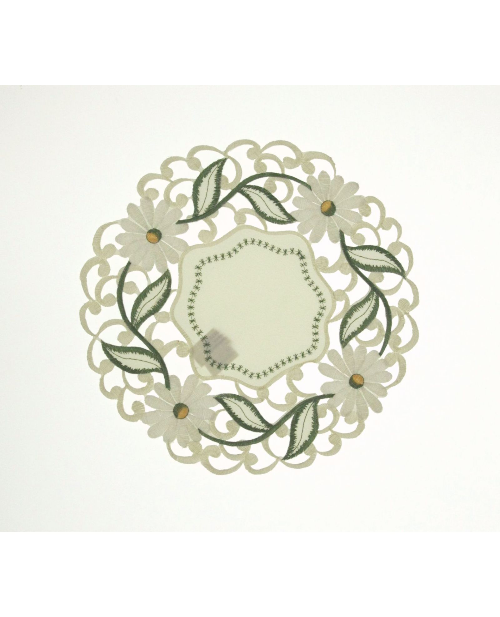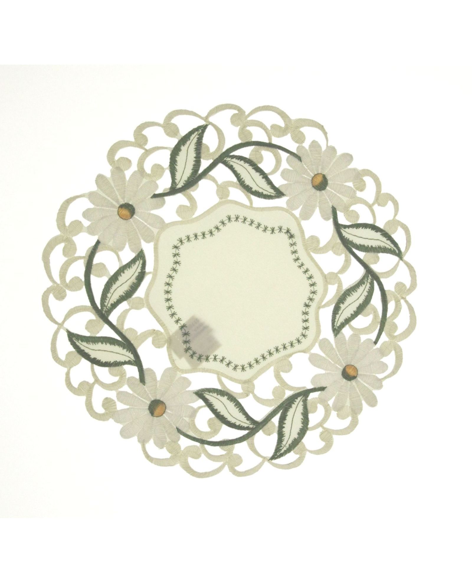 Серветка молочного кольору з вишивкою та ажурними краями